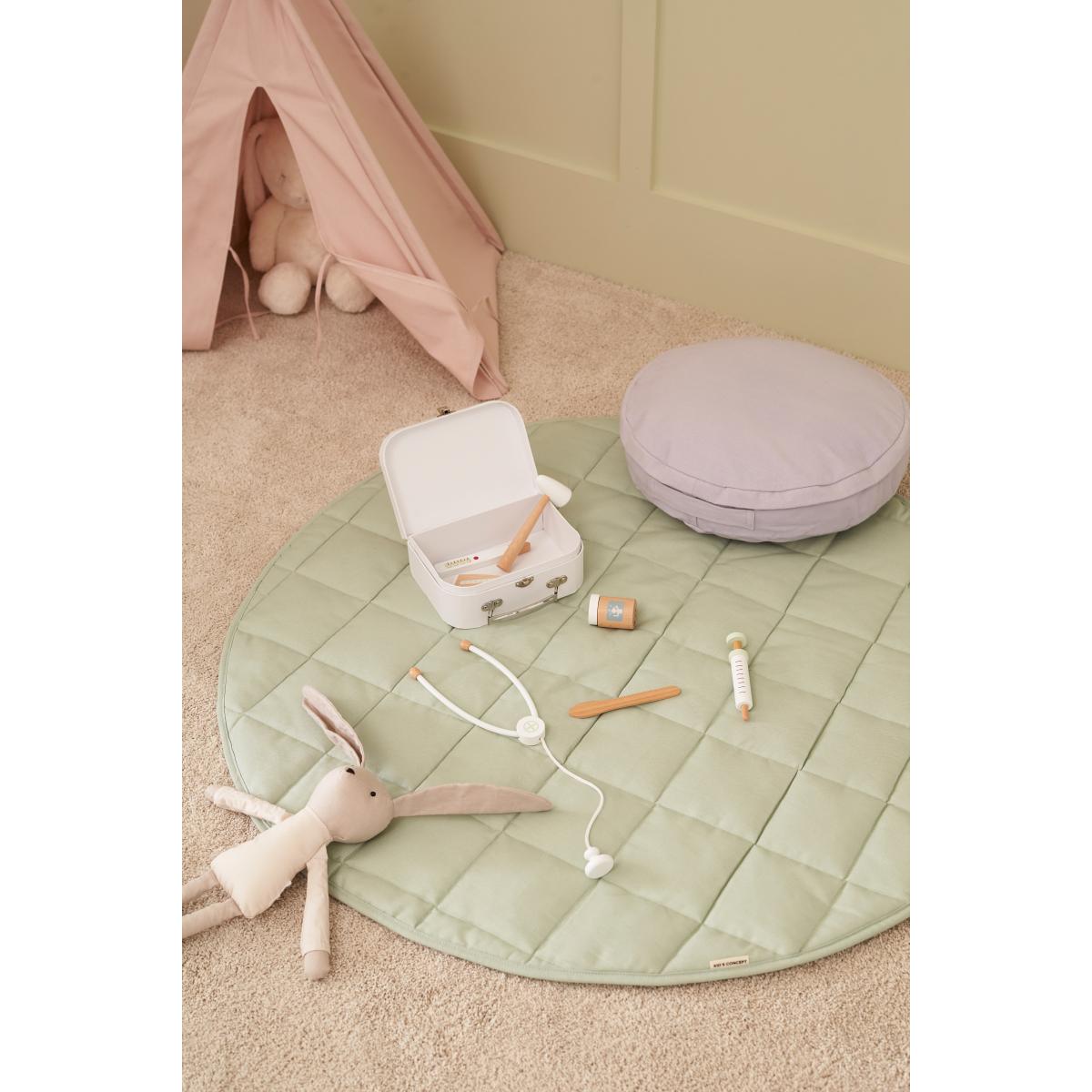 This light-green playmat is a versatile addition to both contemporary and scandi-inspired nurseries and play areas. I love its soft hue, which adds a calming tone without overpowering the space. It works well layered over wooden or neutral-toned floors, creating a cosy zone for play and exploration. For styling, consider pairing it with muted toned furniture and minimal accessories to let the mat stand out slightly while maintaining a clean aesthetic. It’s practical too-perfect for cushioning little ones’ tumbles, and its round shape introduces a gentle, playful element to the room’s design. Overall, it's a simple yet functional piece that complements a variety of interior styles, making the child's space feel welcoming and stylish.