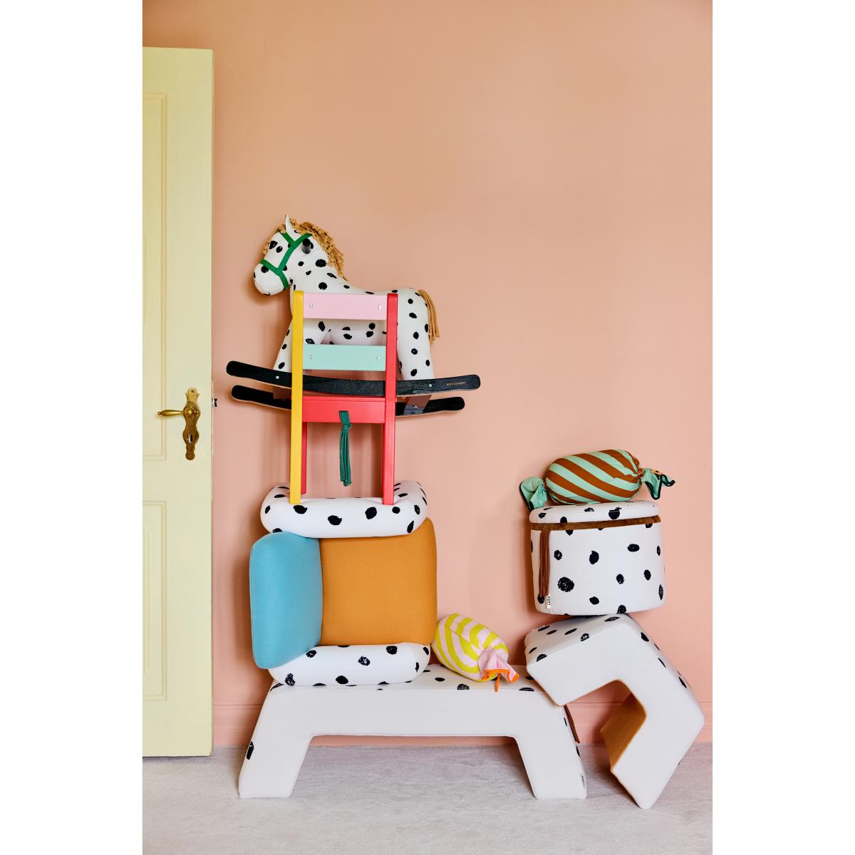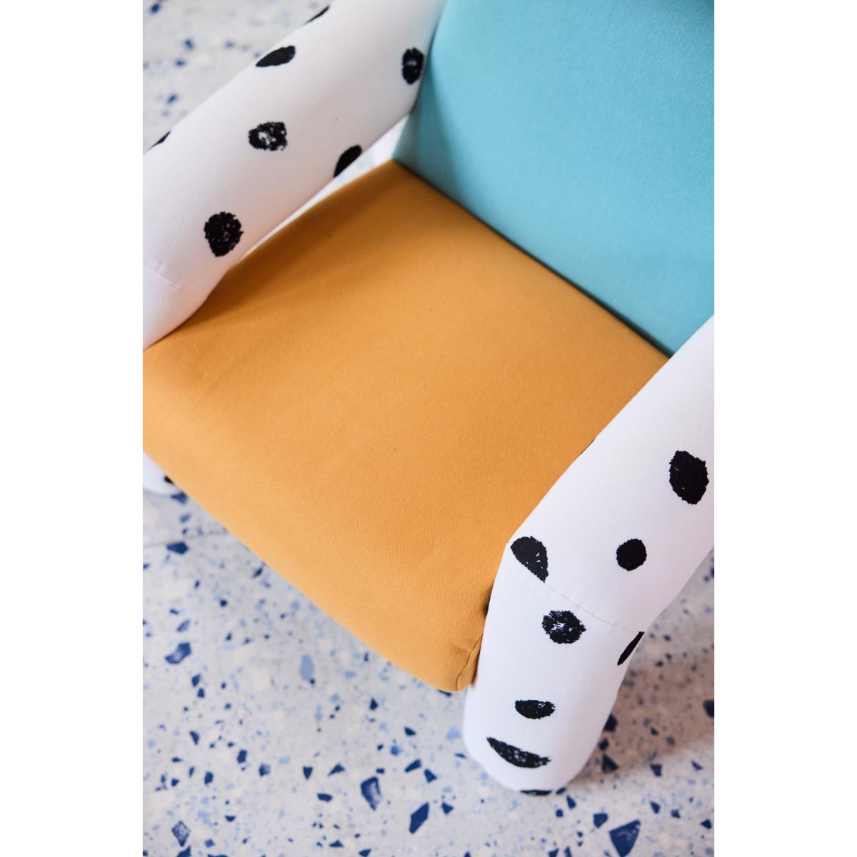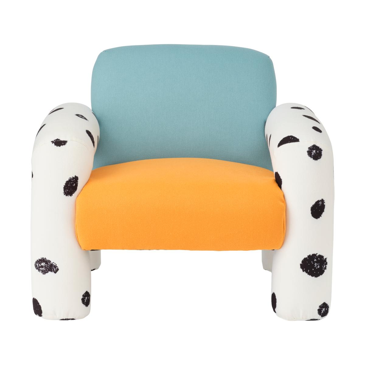 I love this little chair for adding a fun, playful touch to a child's room or family space. Its bold colour blocks and Dalmatian print make it a versatile piece that works well in modern, Scandi or eclectic interiors. The rounded, cushioned design ensures comfort, while its size makes it ideal for smaller spaces or as a cosy reading nook. For styling, try pairing it with neutral or pastel furniture and minimal accessories to let the chair stand out, or add a few colourful cushions for extra personality. It also works well in a collaborative playroom, bringing both function and fun into the space.