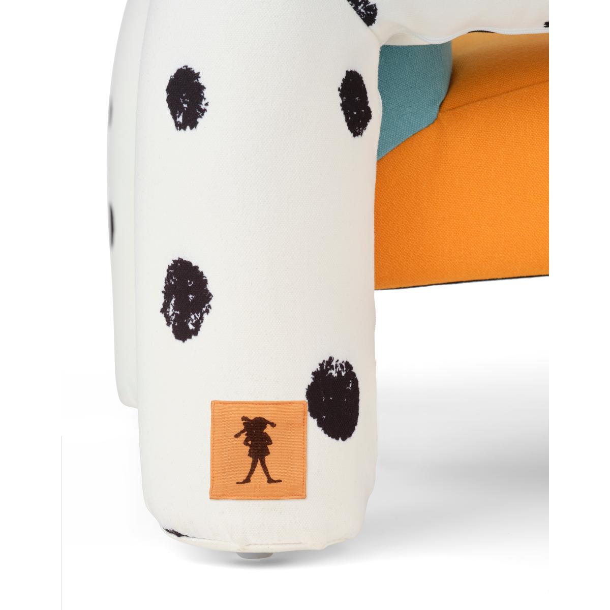 Pippi armchair from Kid’s Concept is a children's armchair upholstered in soft polyester fabric with a spotted pattern inspired by Pippi Longstocking's horse. The colorful fabric armchair features seat and backrest in different shades that create a playful contrast and a unique look for the child's room. Easy to move during play, reading or rest – perfect as a pop of color in the play corner or by the bed. A comfortable and characterful children's armchair that carries Pippi's adventurous spirit.