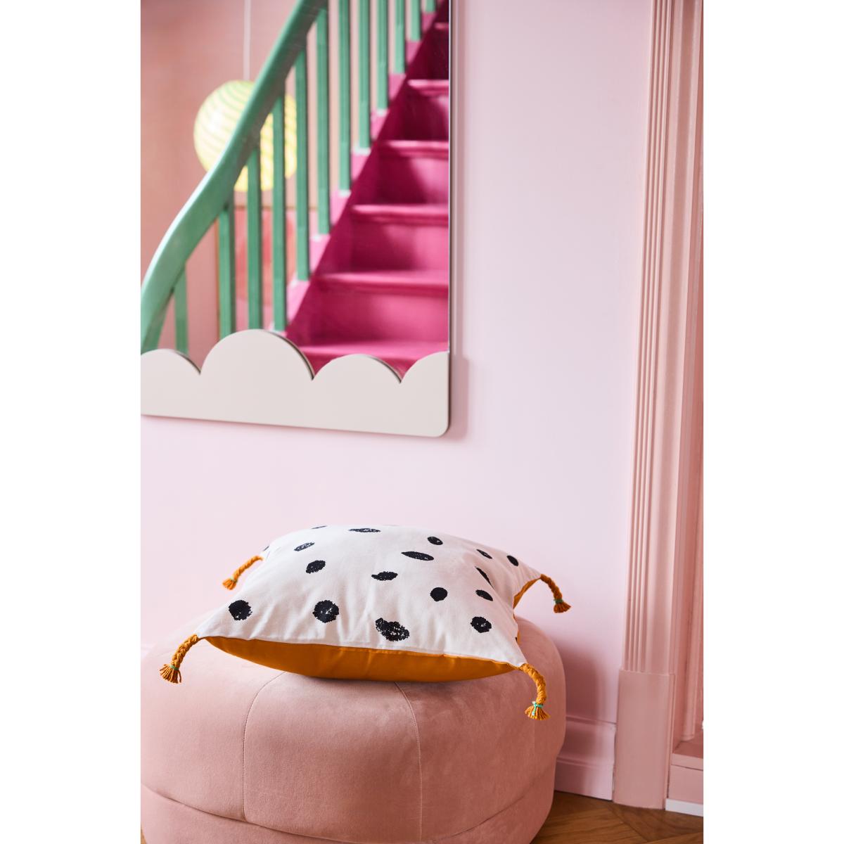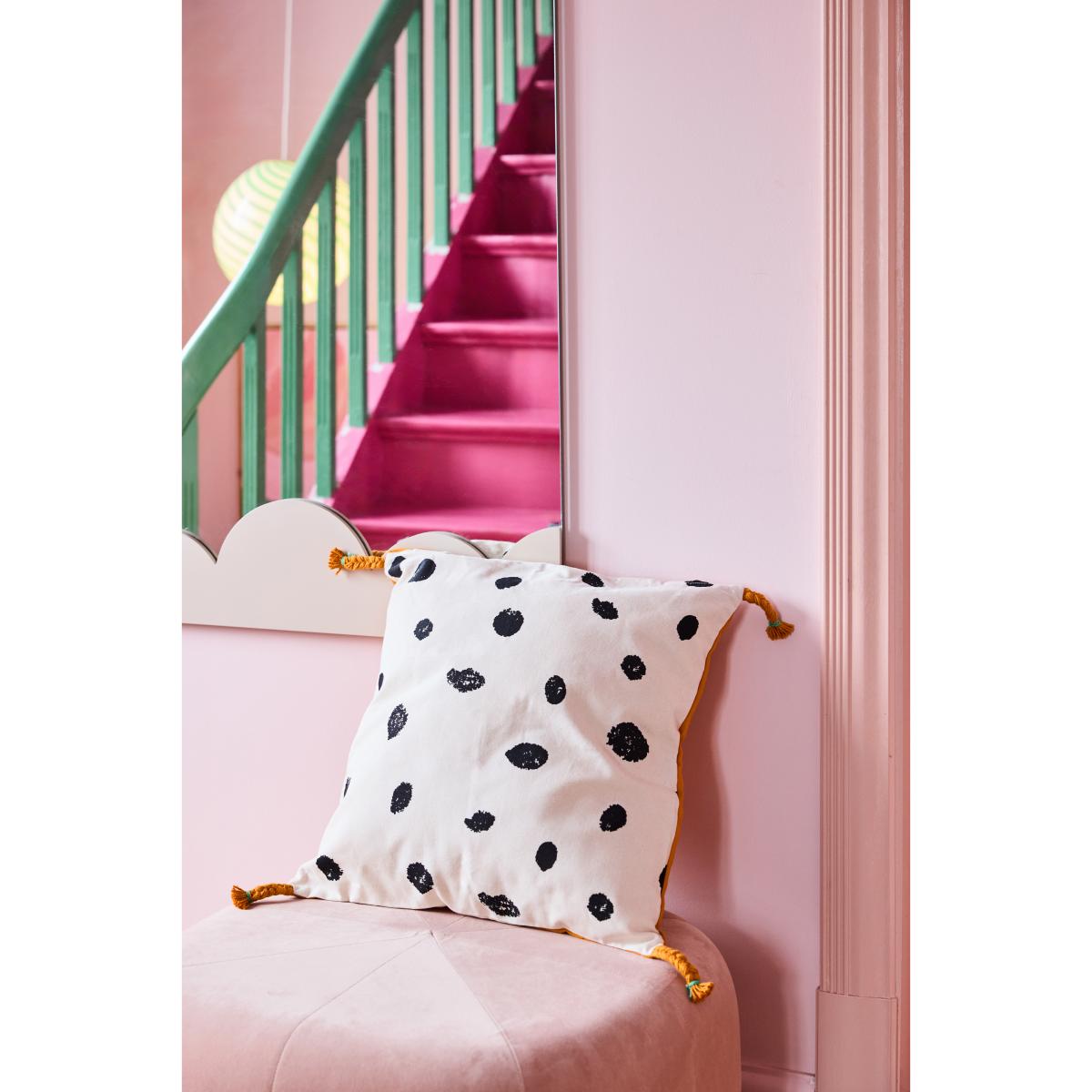 I love this little cushion cover for its playful yet versatile design, making it a great addition to both kids’ bedrooms and cosy family spaces. The white-orange colour combination adds warmth and brightness, perfect for creating a lively, inviting atmosphere. It works well in modern, Scandi-inspired interiors when paired with muted tones, or as a pops of colour among neutral furnishings. Practical styling tips include pairing with textured throws or layering with other cushions to add depth, and using it as a statement piece on beds or armchairs. Its size is ideal for mixing and matching in cosy corners or on nursery beds, making it a flexible and cheerful addition to any interior.