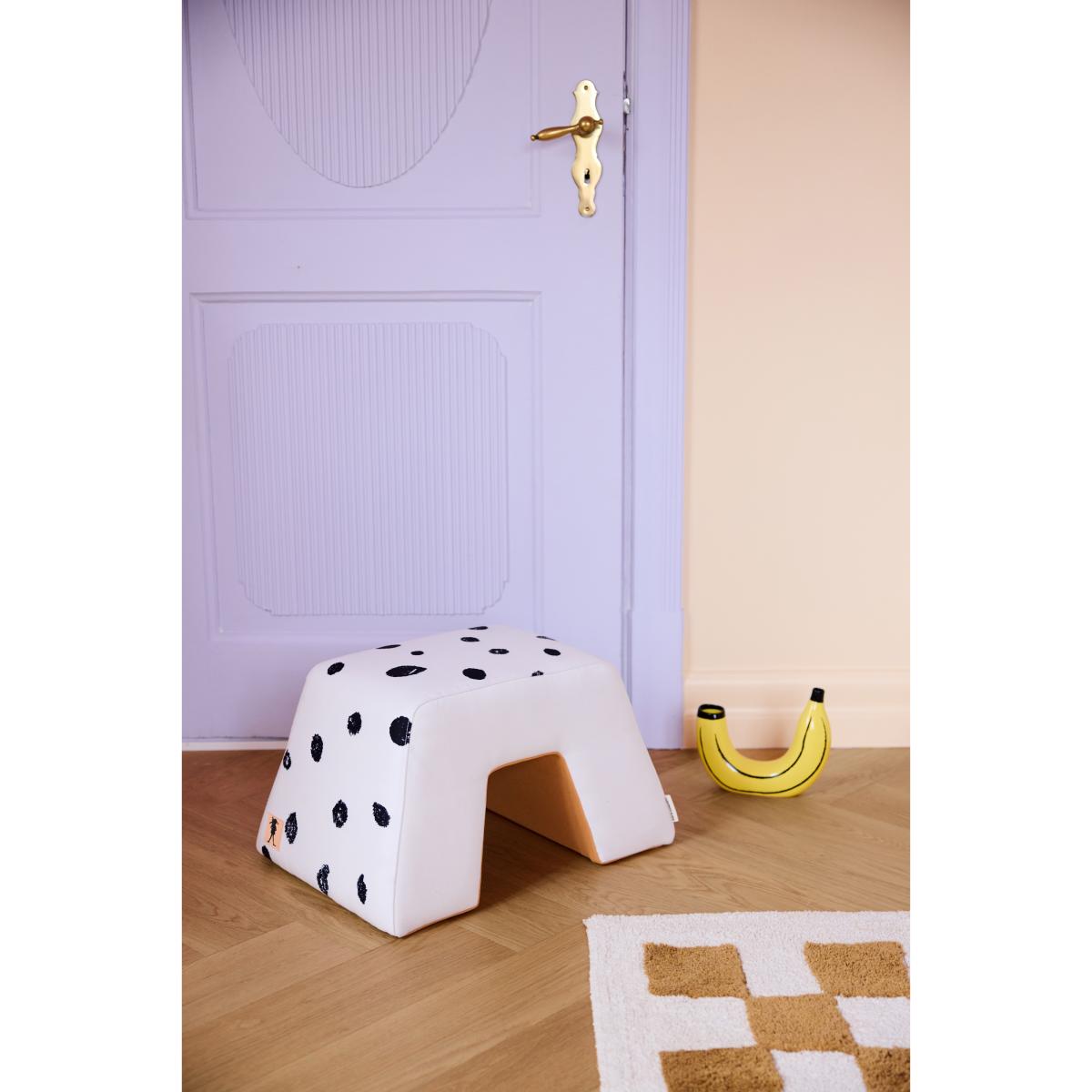 Pippi stool from Kid’s Concept is a round stool in soft fabric with a pattern inspired by Lilla Gubben, Pippi’s faithful horse. The padded fabric stool has rounded shapes and a sturdy yet lightweight construction that makes it easy to move around the room. It works just as well as a seat, footstool, or decorative accent in the children’s room. A colorful and playful stool that brings joy and a fairytale feeling to every corner of the home.
