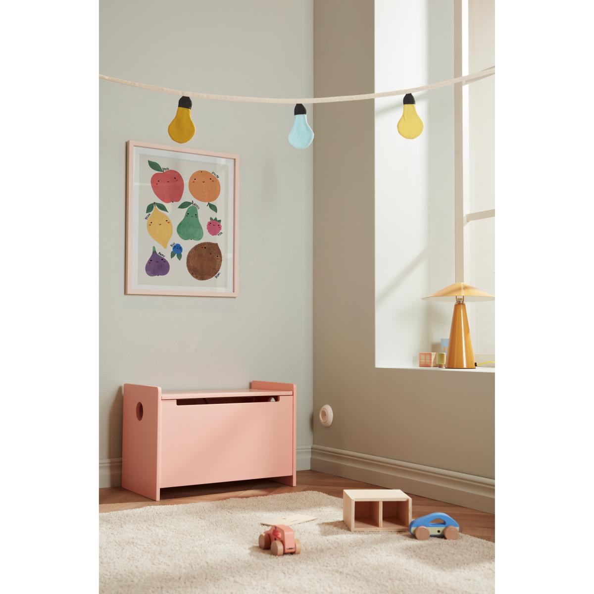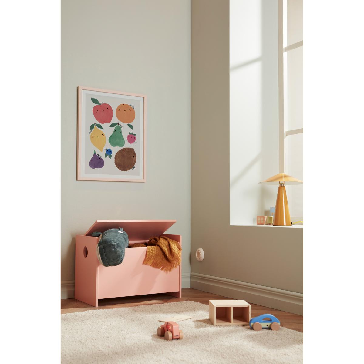 I love this little chest for adding a pop of colour and playful charm to a child's room. Its soft apricot hue works beautifully in both Scandi-inspired interiors and more eclectic, colourful schemes, making it versatile for various styles. Its compact size is great for keeping toys, books, or clothes organised without overwhelming the space. Practical styling tips include pairing it with neutral walls and adding some fun accessories on top, like a small lamp or stuffed animals, to create a cosy, inviting corner. It's also a smart choice to keep mess at bay while adding a cheerful touch to the overall decor.