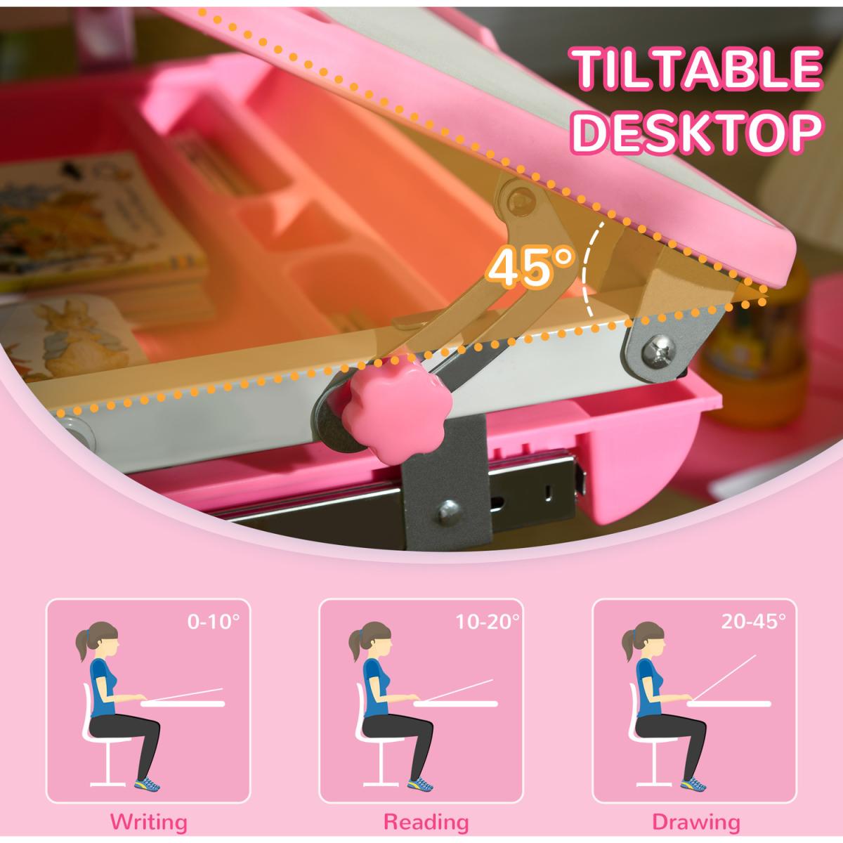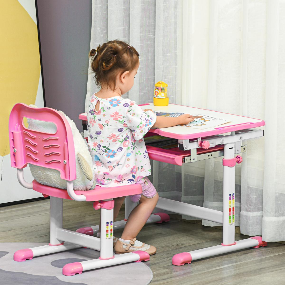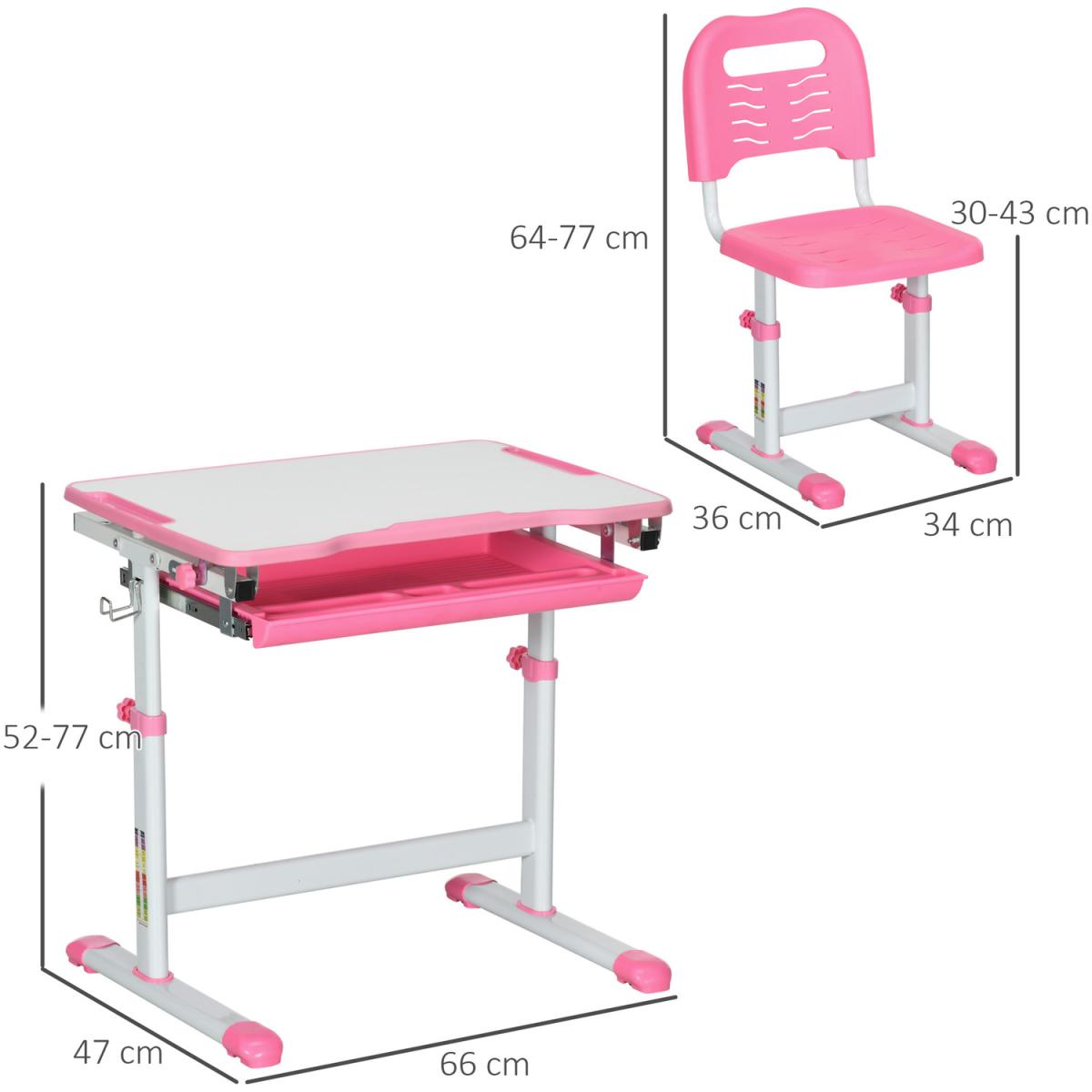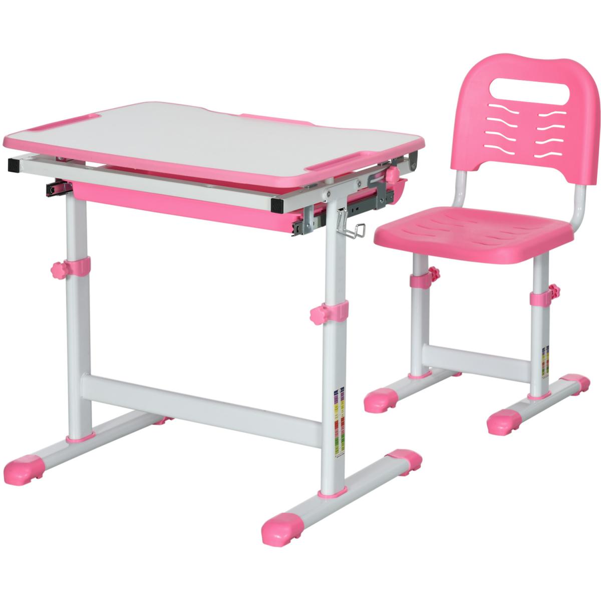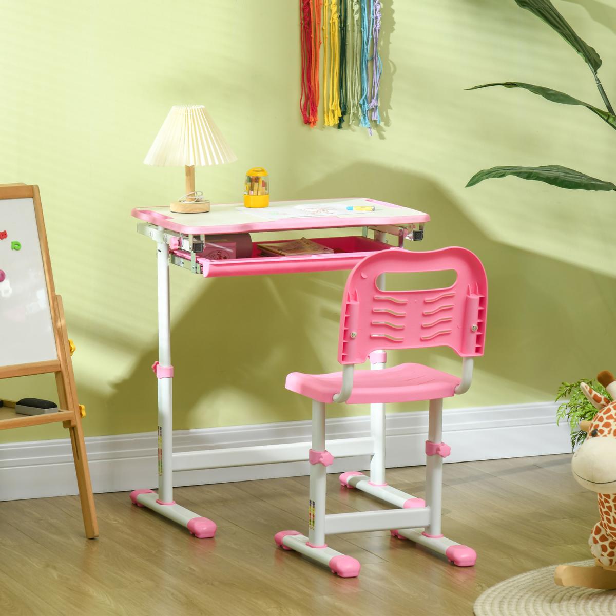 Kids Desk and Chair Set, Student Adjustable Writing Desk - Pink
