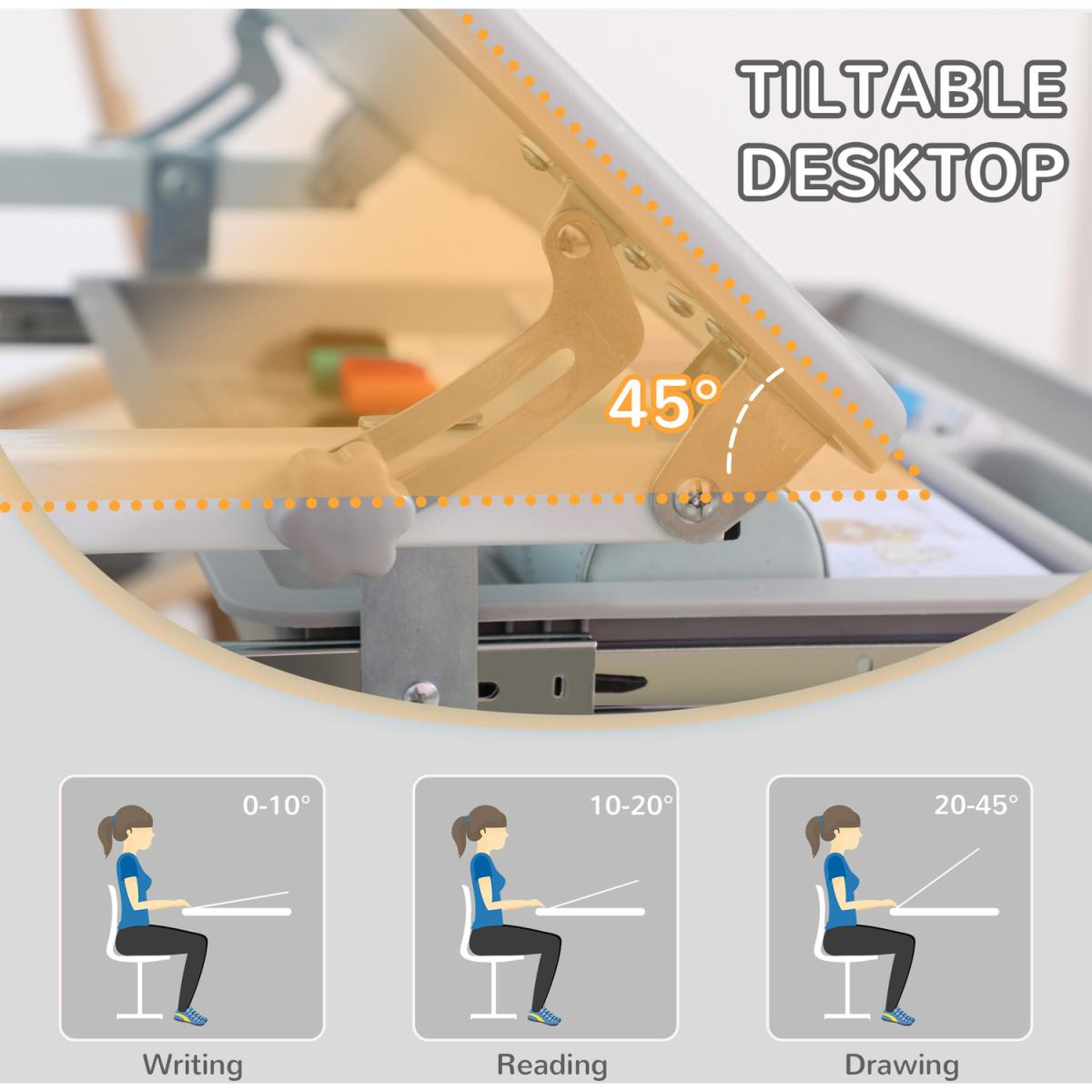 This 2 pcs HOMCOM kid desk and chair set is the perfect tool to help children develop good sitting habits. Safe and sturdy, round polishing edge prevents your kids from getting injured. It can be assured that your child's safety is always guaranteed. And features an attractive appearance. This will be a great addition to any kid room decorations and a perfect birthday or Christmas gift for your lovely kids!