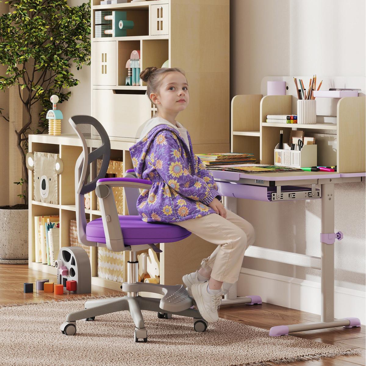 Invest in this kids study chair designed for long-lasting comfort and support. With a swivel seat and adjustable height, footrest, and armrests, this kids desk chair ensures a tailored fit for your child's changing needs. The ergonomic mesh backrest and Y-shaped lumbar support encourage a healthy sitting posture, while the soft, removable cushion adds comfort and hygiene. The stable base with smooth universal wheels ensures easy mobility, making it ideal for various activities.