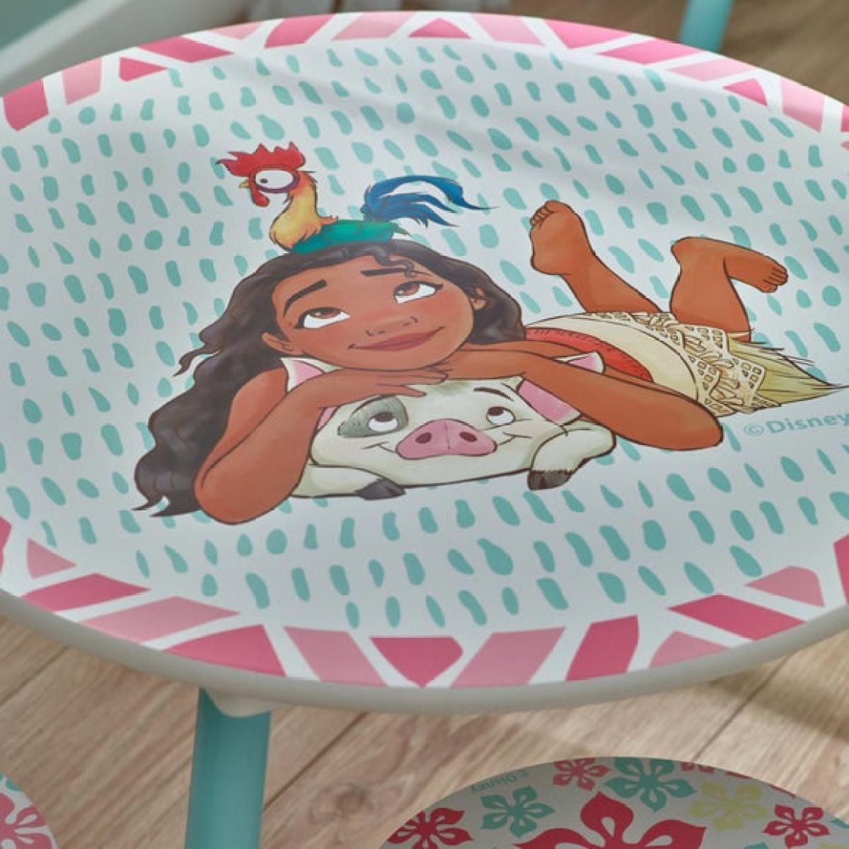 * Matching table and stool set * Suitable for 3-12 years * Compact size Bring island magic to your child’s play space with the Moana table and stools set, a delightful setup for crafts, snacks, and storytelling! With colourful Moana and Heihei artwork and a sturdy wooden build, this set is made for everyday adventures. The stools are just the right size for little ones and support up to 30kg, making them perfect for all kinds of fun. Please Note: In accordance to The Offensive Weapons Act 2019, this product is now click and collect only. You may be asked to show ID upon collection.