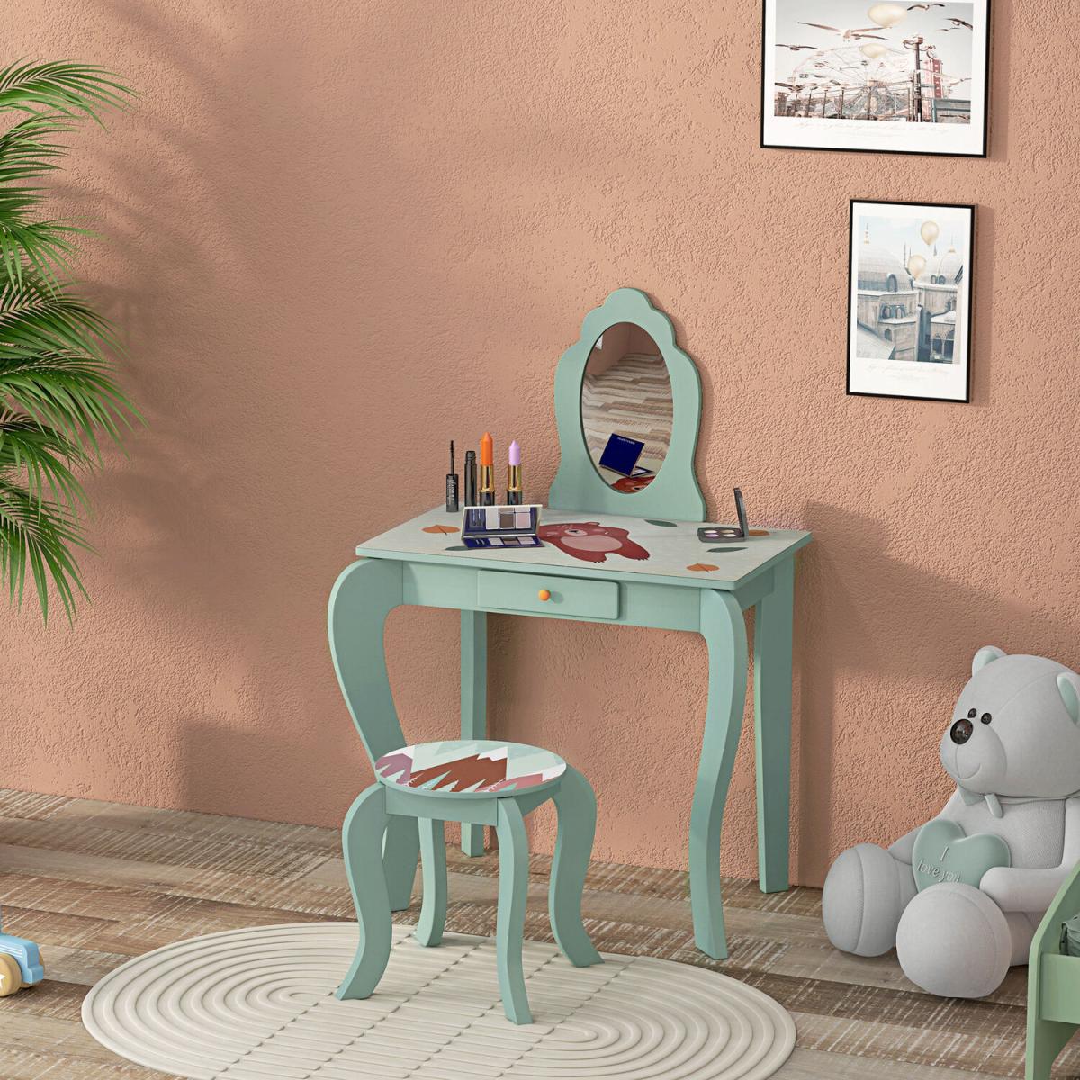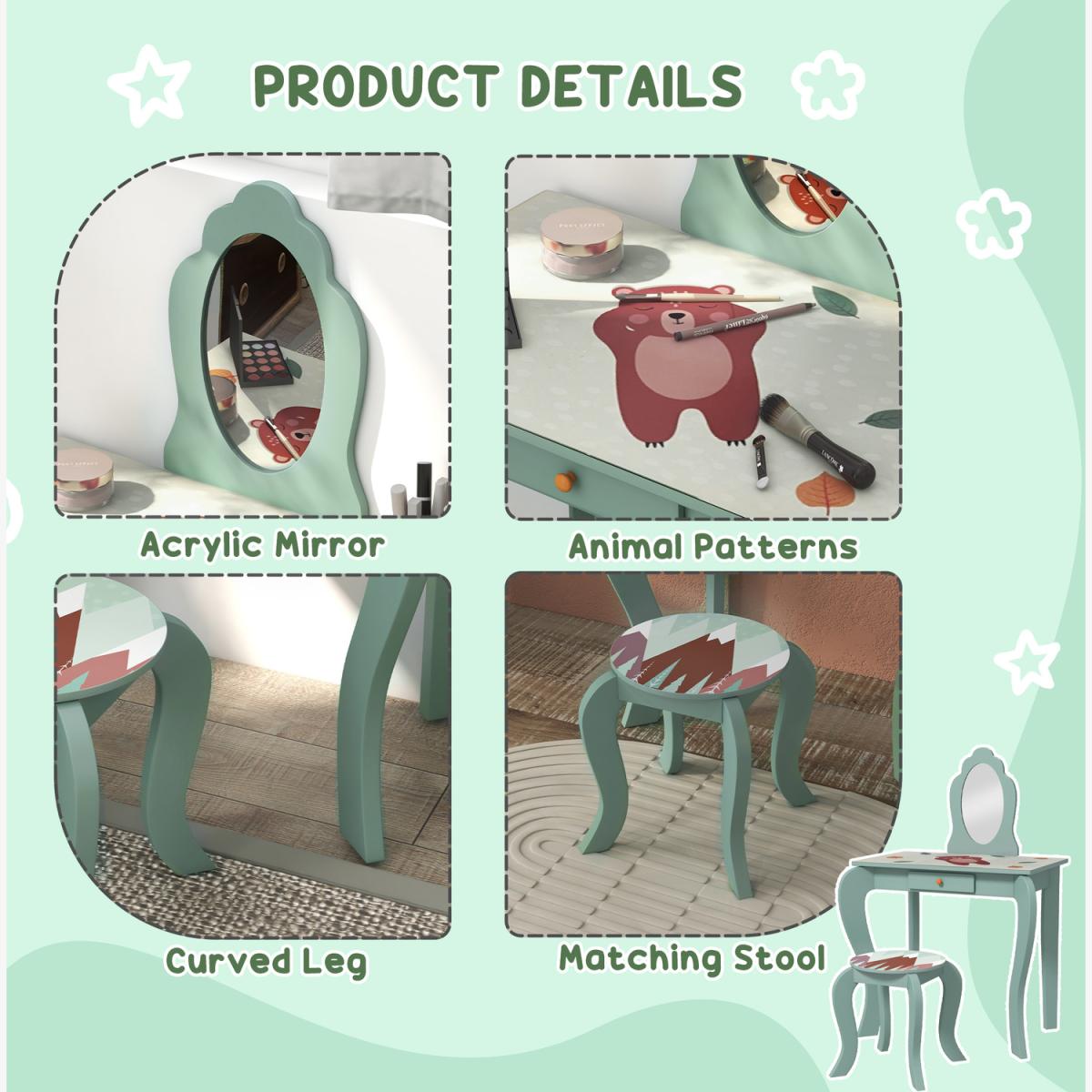 Uplift your child's room with our adorable ZONEKIZ vanity table. Cute and vibrant, its animal design sets the tone nicely for any room. Their own little haven, they'll use the mirror to get ready in the mornings, practise their makeup, do their hair and more. When finished, loose accessories go in the drawer or are kept neatly on the tabletop. With certified materials, it provides hours of imaginative, worry-free play. Watch their creativity blossom, thanks to this fantastic dressing table set.