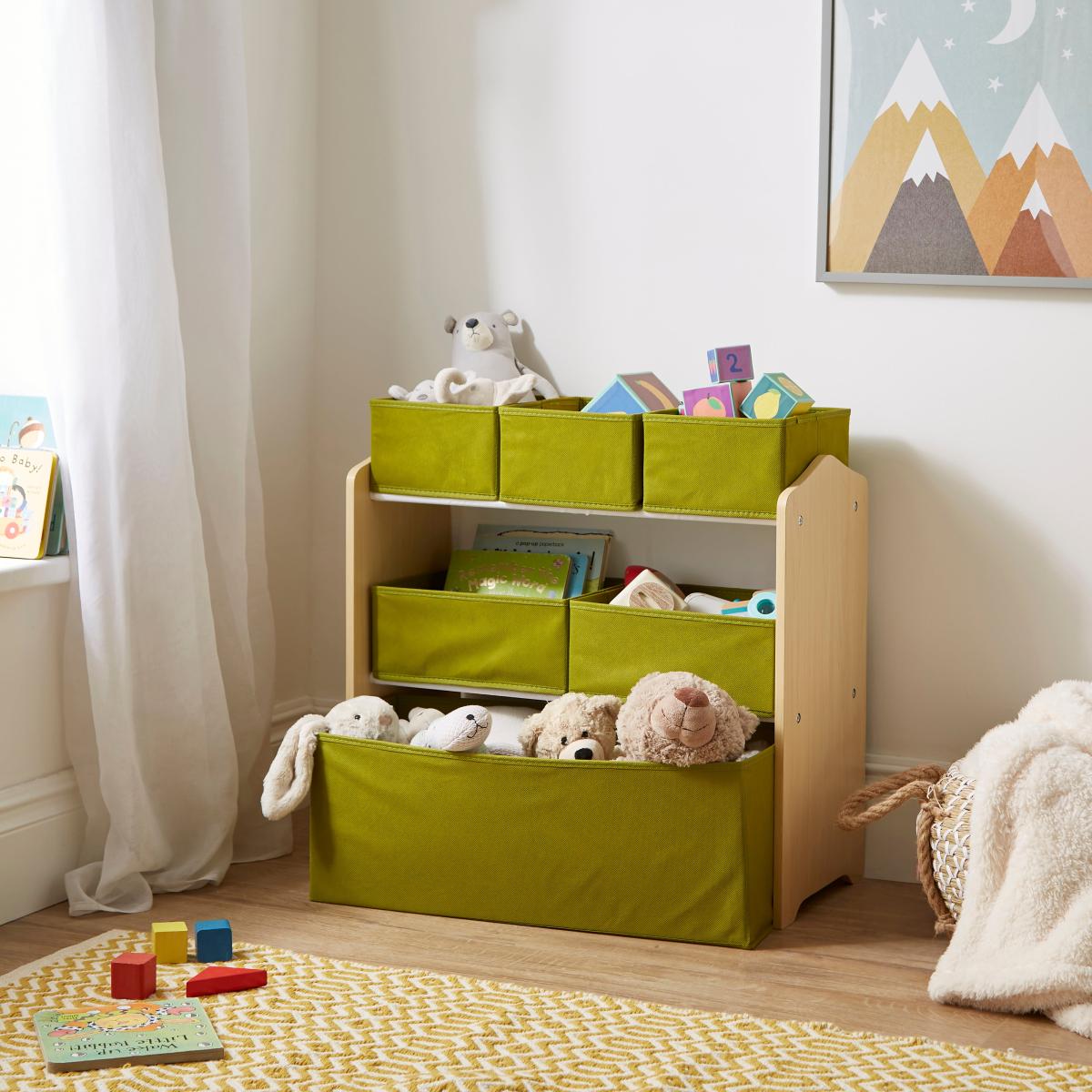 I love this little organiser because it combines practicality with a fun touch of colour, making it perfect for a child's space. Its fabric design and vibrant fern print bring a lively yet soft vibe, fitting well in both modern and cosy interiors. It works particularly well in playrooms or nurseries with neutral palettes, adding a splash of colour without overwhelming the space. Practical styling tips include pairing it with open shelving or a simple wooden furniture setup to keep toys easily accessible, and placing it where kids can reach their favourite items independently. It's a great way to encourage organisation while keeping the room playful and inviting.