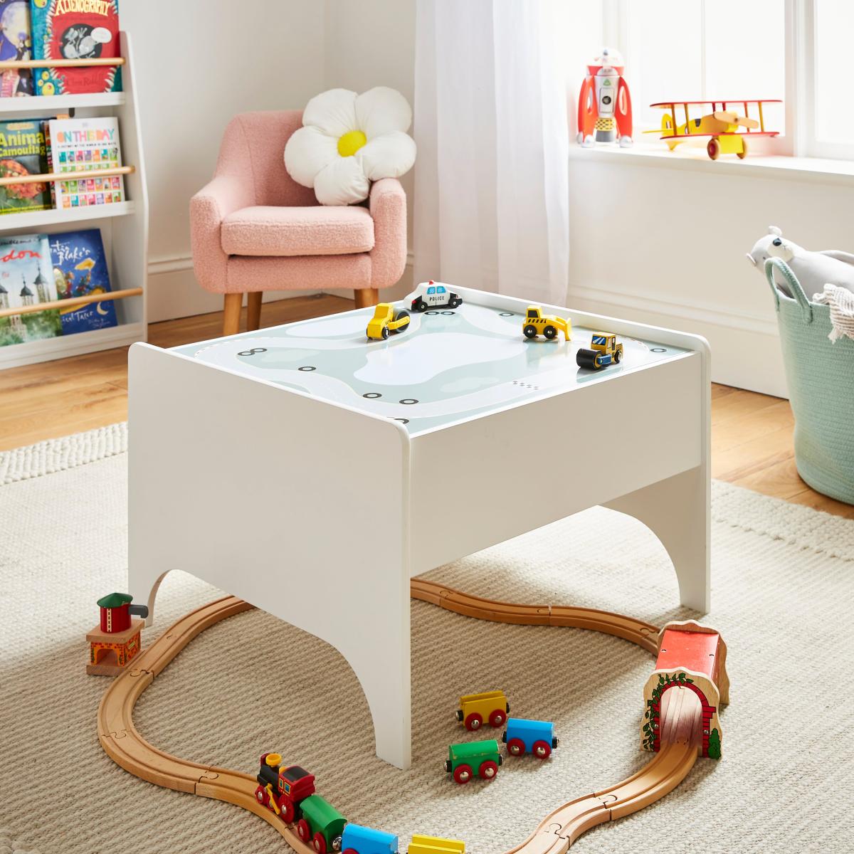 I love this kids racetrack play table for its simplicity and practicality, making it a versatile addition to a child's play area. Its clean white finish ensures it can slot easily into various interior styles, from Scandi minimalism to modern playful spaces. It works particularly well in contemporary nurseries or family rooms where you want a piece that’s functional yet understated. Styling tips include pairing it with colourful toys or plush cushions to add warmth and personality, and integrating it into a corner so it doesn’t dominate the room. The neutral colour also makes it easy to maintain and keep looking fresh, while the racetrack adds an engaging and interactive element that encourages creative play.