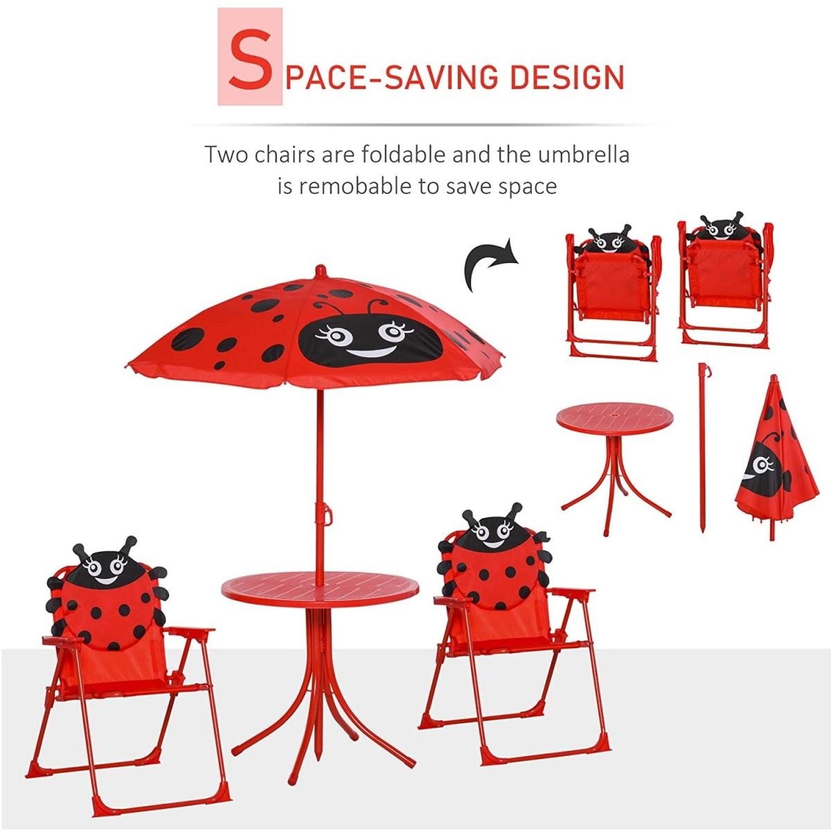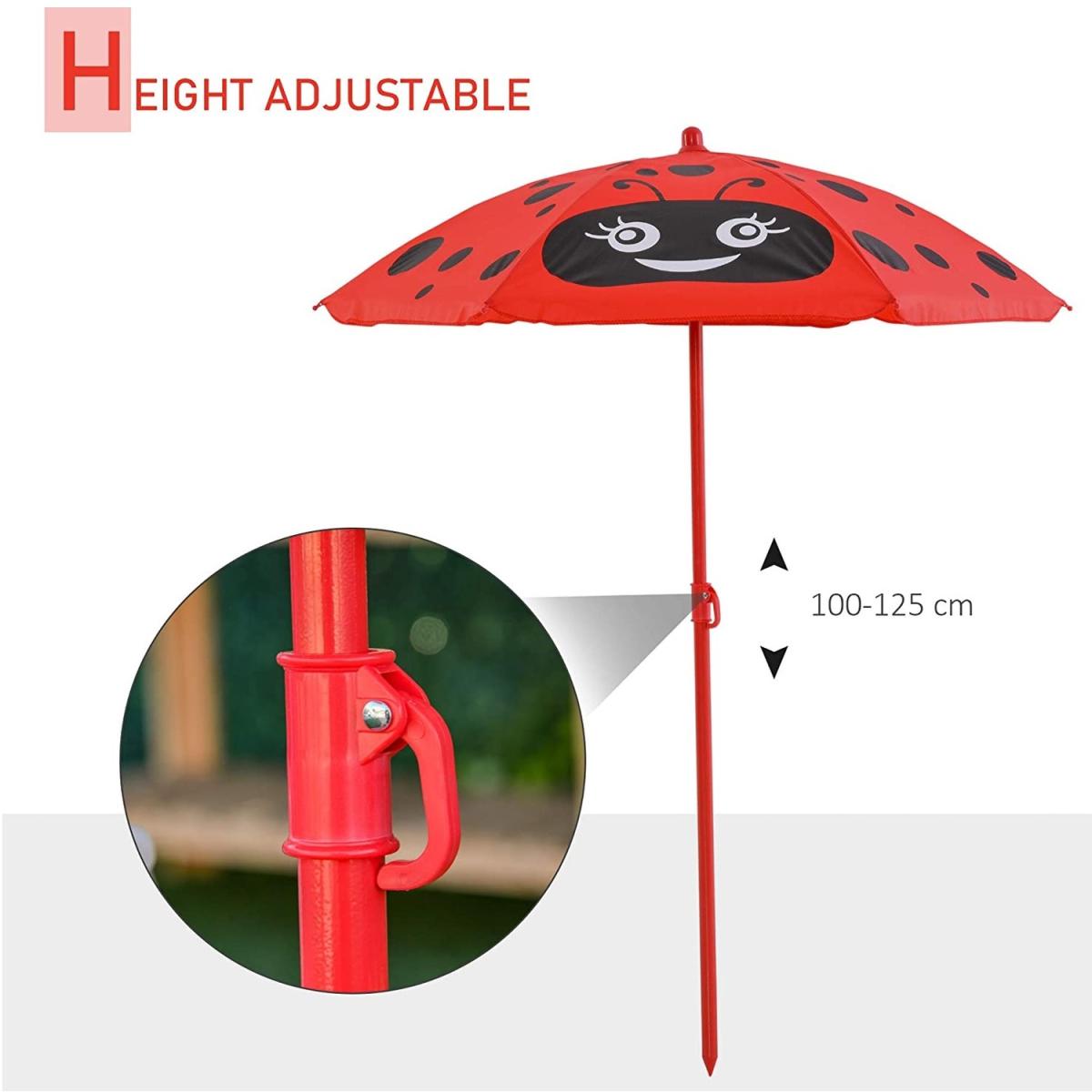 This specially designed kids dining set gives your little one and a friend the perfect place to enjoy the sun. Comes with two deck chairs, a round table and matching parasol umbrella. The fabric is finished in a beautiful and colourful ladybird design - children will love using this set. Using metal for the frames, each piece is sturdy, with end caps for extra balance and protection against marks and wear. Now this is outdoor furniture made to impress.