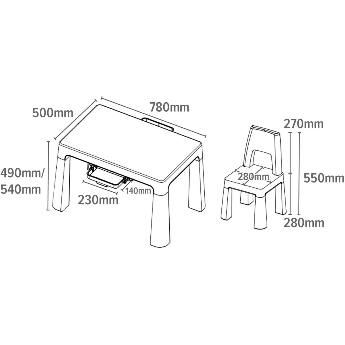 The unique Kids Height Adjustable Table and Chairs Set is stylish and modern in design. The table and chair set are ideal for children ages 18 or 24 months right up to 8 years old. This set will grow with your child as it features height adjusting legs. Simply click on the extension pieces, it is as easy as that. The table goes from 490mm to 540mm no tools are required. This is an ideal table for children to play, eat, read, do homework on. Due to its modern design, it can effortlessly fit into any playroom or bedroom. This table also includes 2 handy storage drawers that are nicely hidden under the table. The table is made from non-toxic durable materials that are odour free. We have also ensured the table and chairs have rounded corners for safety.