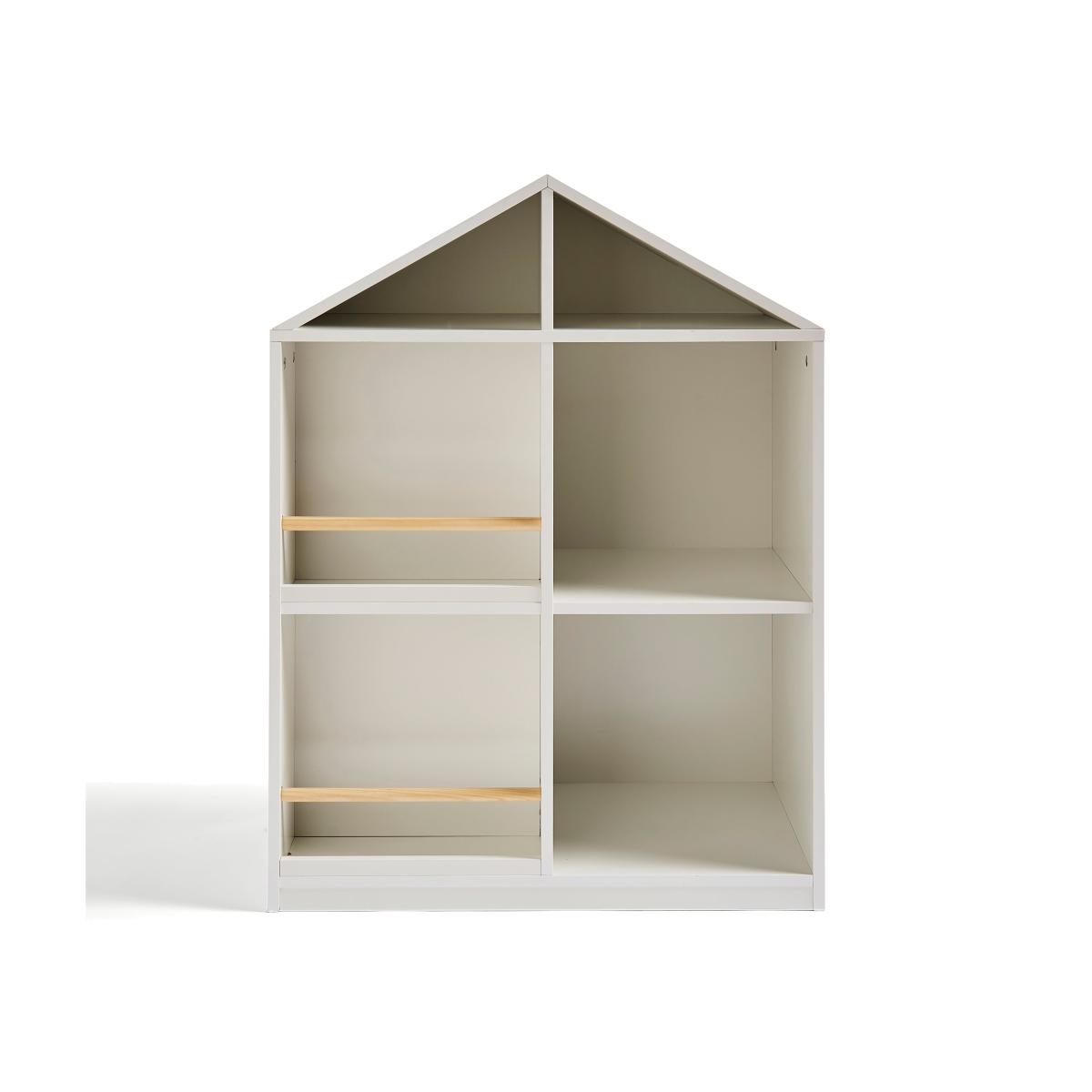 Dunelm Exclusive - Designed and Developed by Dunelm* Fun, house shape* Classic white design* Round edges/corners* Strong structure with large storage space Introducing our enchanting Kids House Bookcase, a delightful addition to any child's bedroom or playroom. Crafted with care, the Kids House Bookcase features a sturdy wooden construction, ensuring durability for years of enjoyment. Its charming design mimics a cosy house, complete with a pitched roof, inspired by the whimsical world of imagination, this bookcase is designed to spark creativity and foster a love for reading. With ample storage space, this bookcase provides a dedicated home for your child's favourite storybooks, picture books, and beloved characters. The four spacious shelves offer plenty of room to organize books by size, genre, or simply display them in an inviting way.