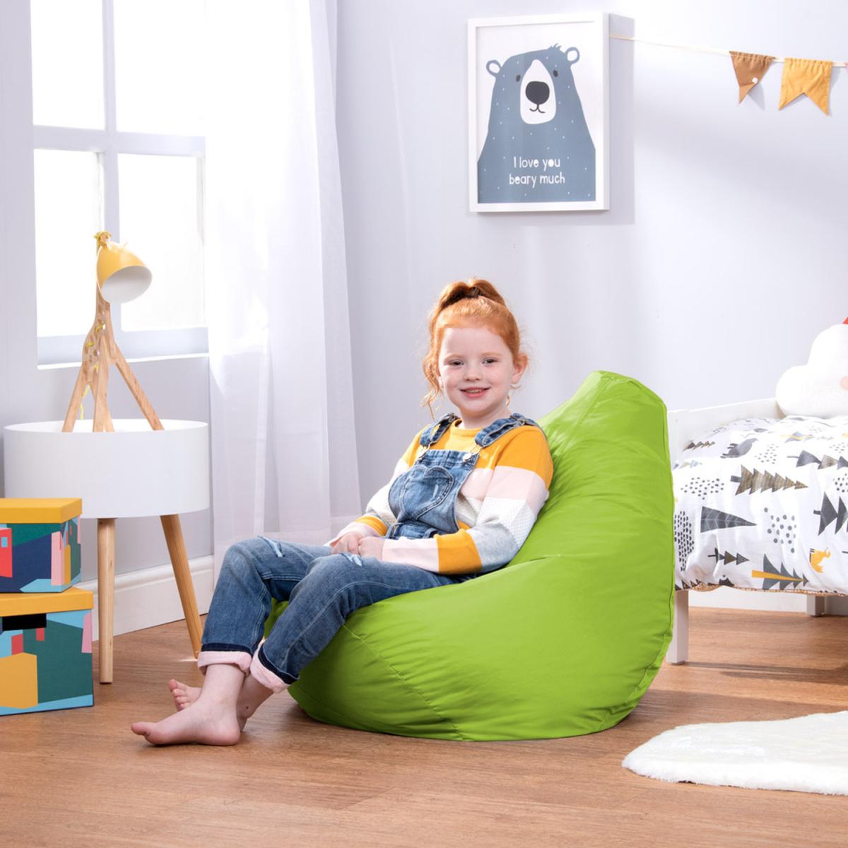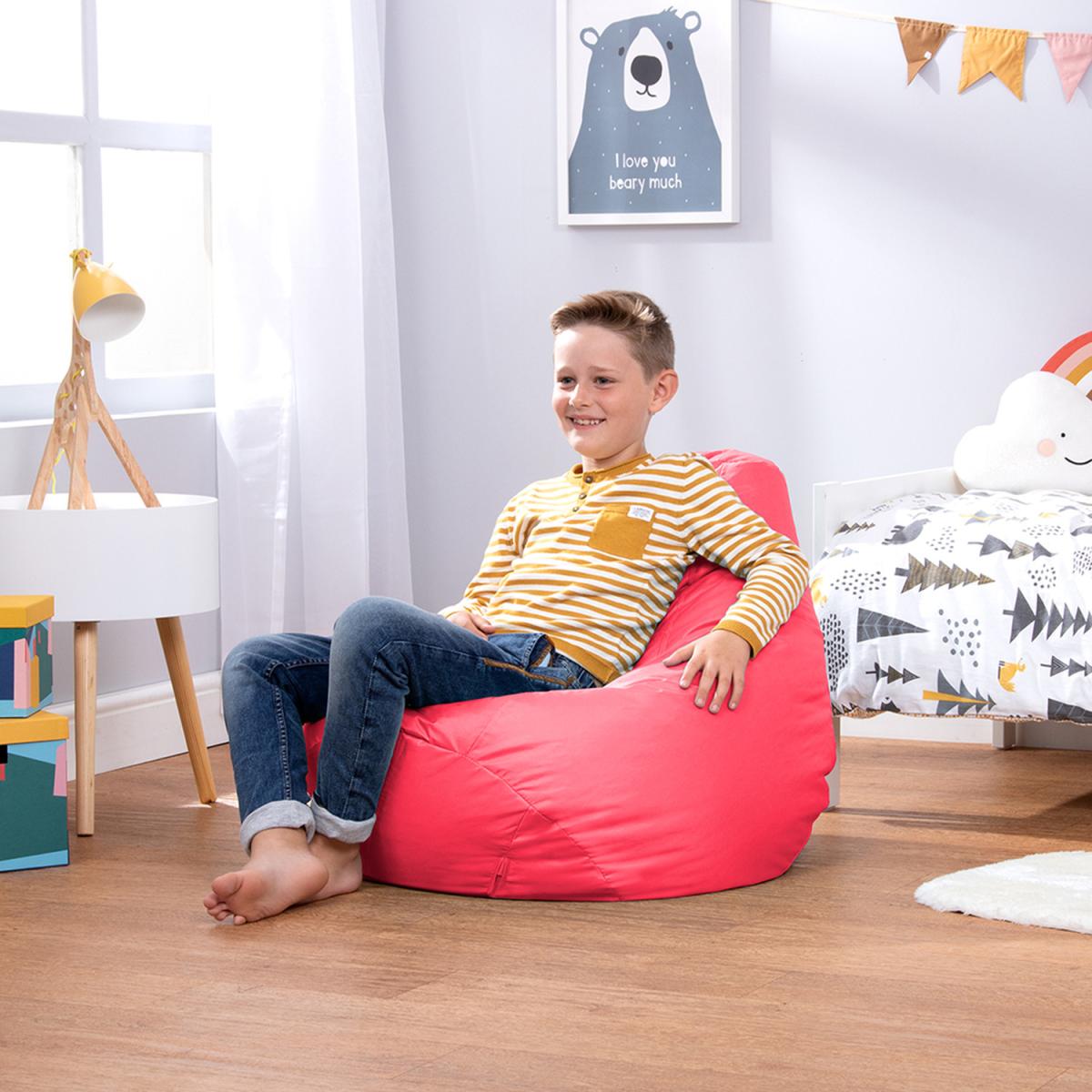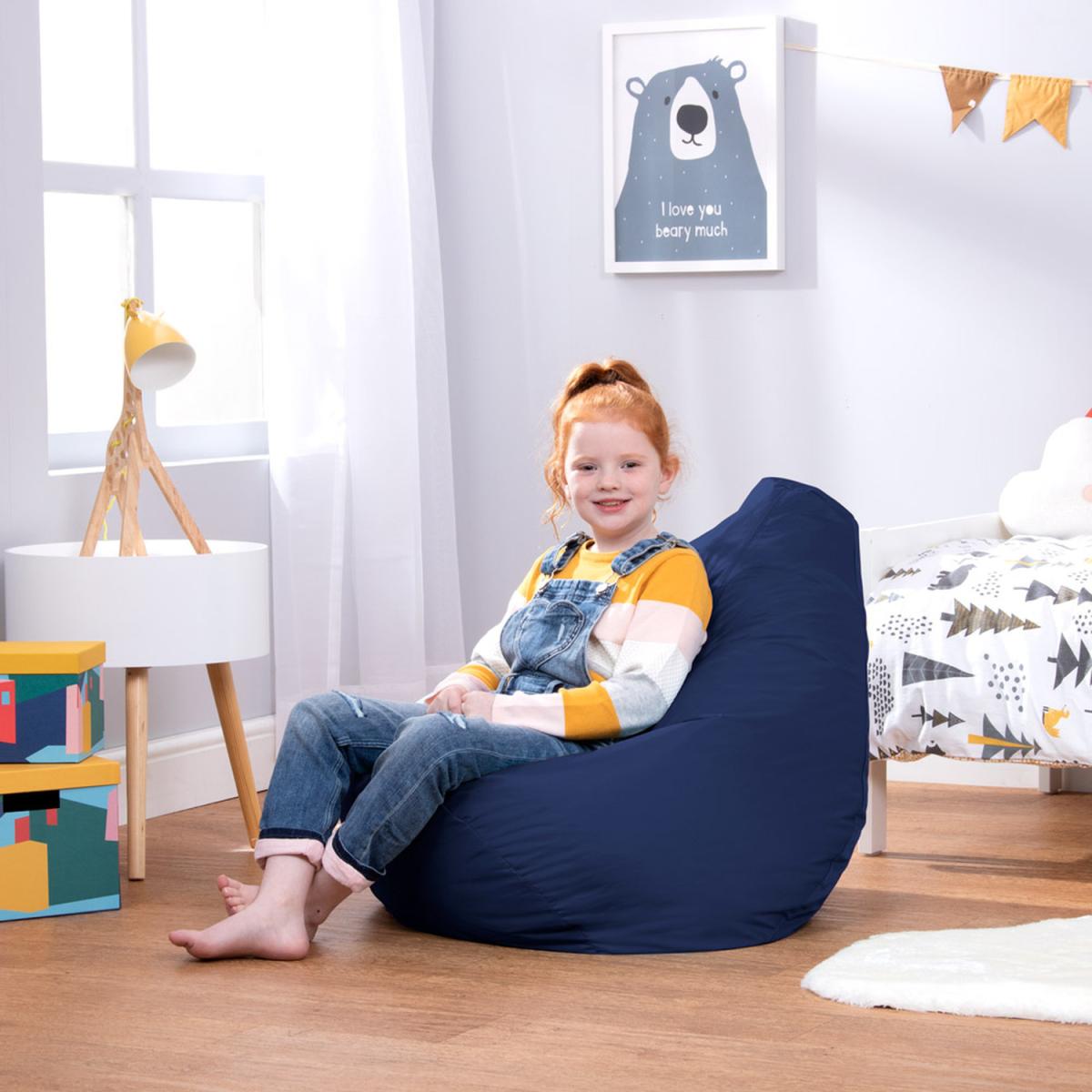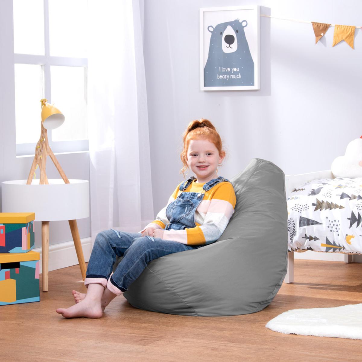 At the heart of every kids' bedroom is a beanbag chair, and this one is super comfy. This playful chair is perfect for reading, relaxing, gaming, exploring the great outdoors and everything in between, great for kids up to 10 years of age. Designed with a raised back for hours of comfort, and filled with just the right amount of bead for a supportive, sink-in finish. Super lightweight and portable, kids can easily carry this beanbag from room to room, great for developing their autonomy. Relax assured as we are fully compliant with the British Standard BS5852 Fire Furniture Regulations 1988. Our designs feature overlocked stitching and double zipping for the security of bead filling.
