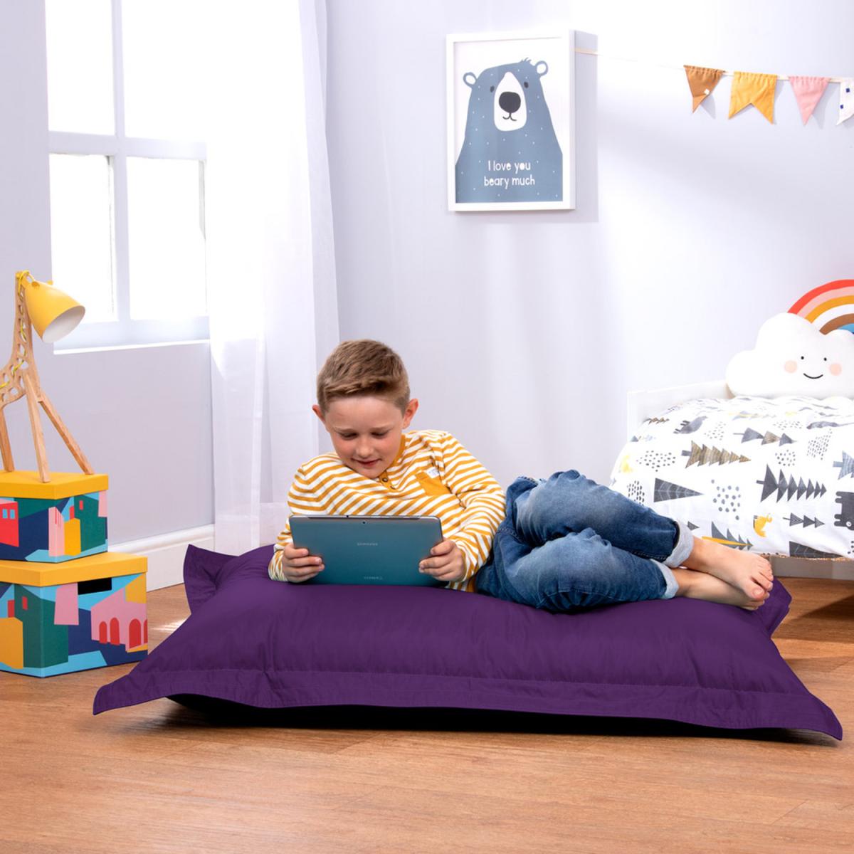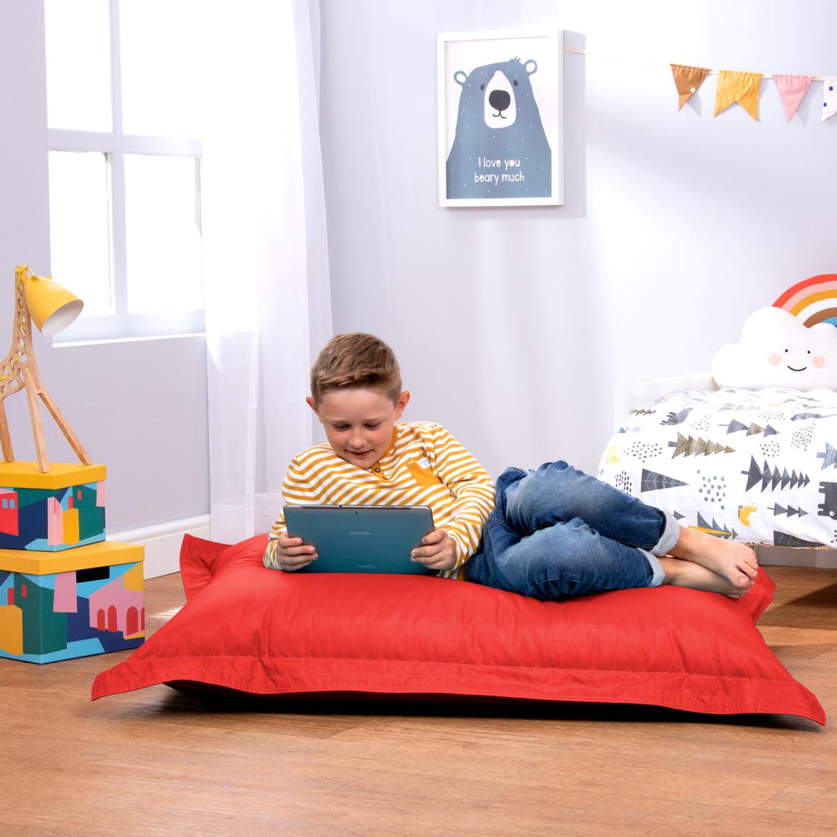 At the heart of every kids' bedroom is a beanbag chair, and this one is super comfy. This playful Bean Bag floor cushion is perfect for reading, gaming, relaxing, exploring the great outdoors and everything in between. Filled with just the right amount of bead for a supportive, sink-in finish. This beanbag will squish into all kinds of shapes prop it against a wall like a floor chair, lay flat for lounging, or straddle into a canoe shape, the possibilities endless. Super lightweight and portable, kids can easily carry this beanbag from room to room and is great for developing their autonomy. Relax assured as we are fully compliant with the British Standard BS5852 Fire Furniture Regulations 1988. Our designs feature overlocked stitching and double zipping for the security of bead filling.