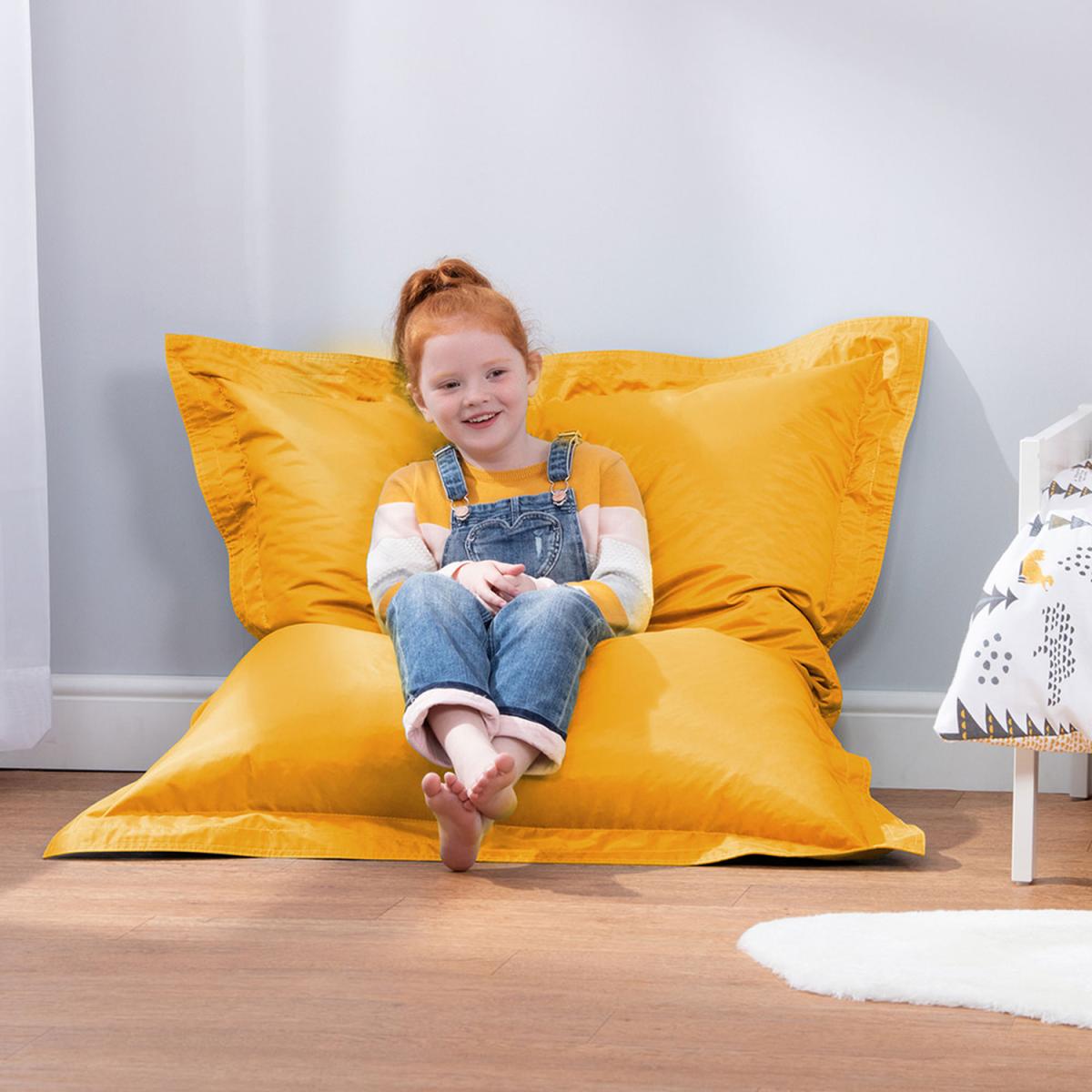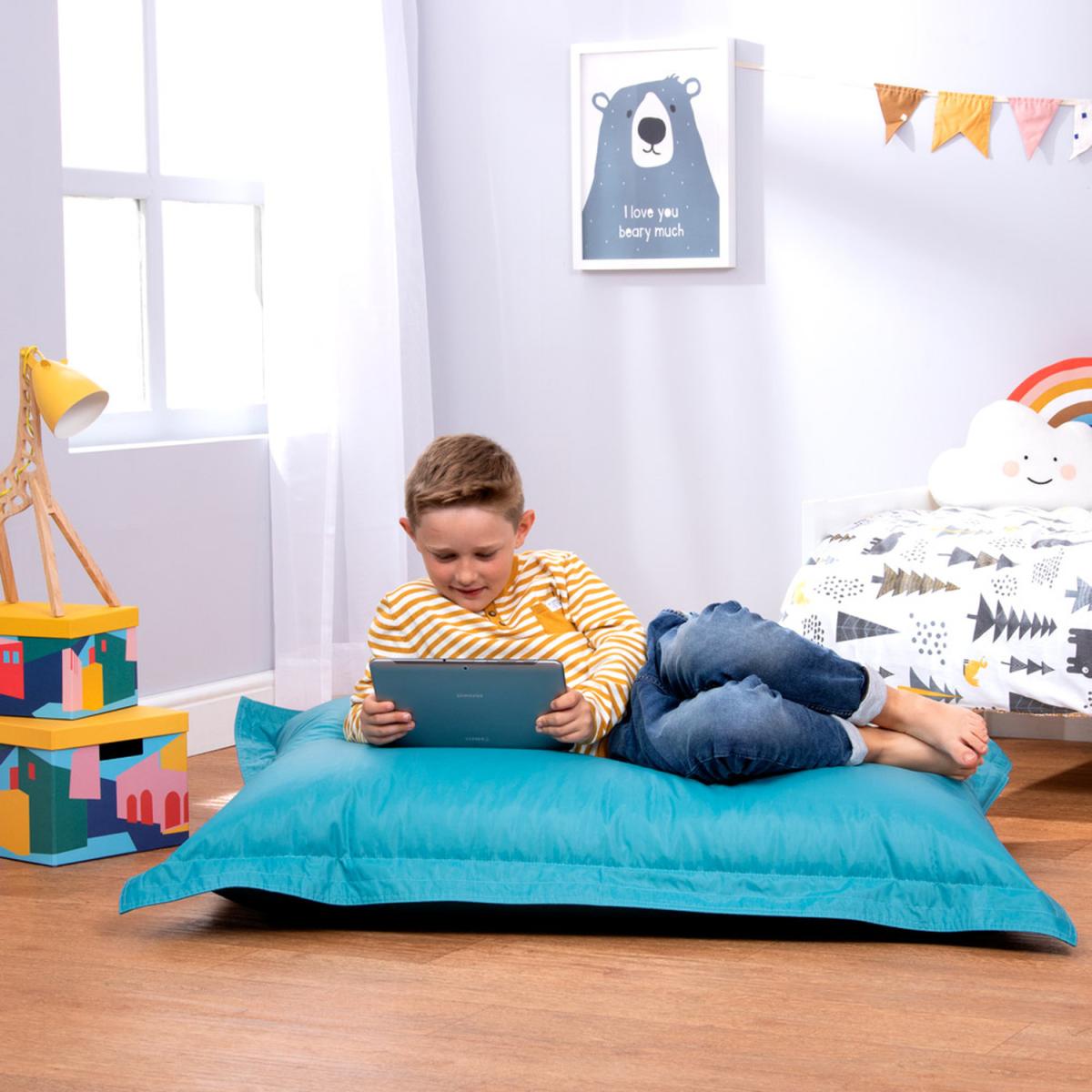 At the heart of every kids' bedroom is a beanbag chair, and this one is super comfy. This playful Bean Bag floor cushion is perfect for reading, gaming, relaxing, exploring the great outdoors and everything in between. Filled with just the right amount of bead for a supportive, sink-in finish. This beanbag will squish into all kinds of shapes prop it against a wall like a floor chair, lay flat for lounging, or straddle into a canoe shape, the possibilities endless. Super lightweight and portable, kids can easily carry this beanbag from room to room and is great for developing their autonomy. Relax assured as we are fully compliant with the British Standard BS5852 Fire Furniture Regulations 1988. Our designs feature overlocked stitching and double zipping for the security of bead filling.