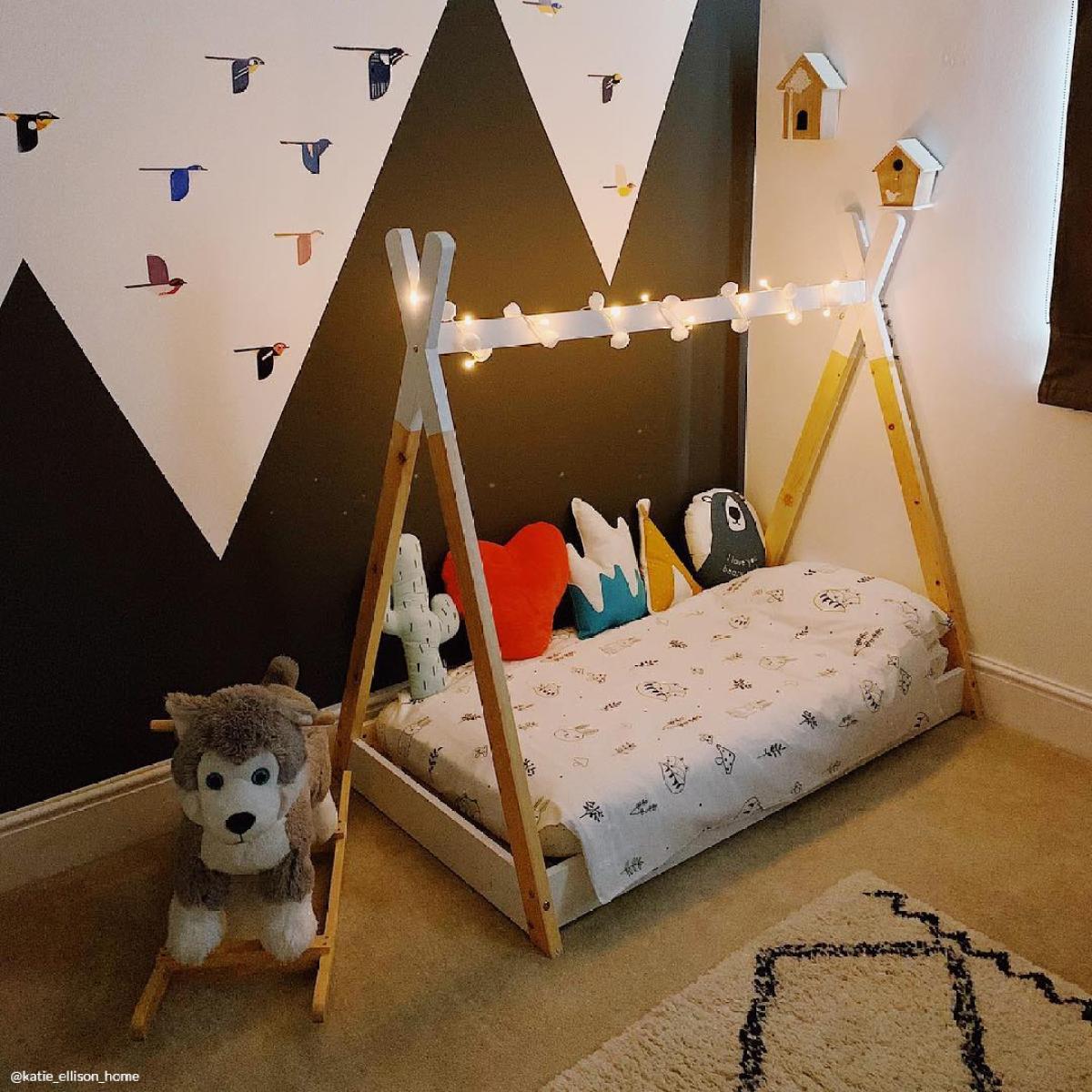 What better way to send your little camper off on their sleepy adventures that with the Kids Junior Tipi Bed! Manufactured from solid pine, the simple yet funky design of this Teepee Toddler Bed is sure to turn the boring bedtime routine into a fun experience! Low to the ground, not only is it a wonderful place to sleep but also to play and plan their latest expedition. Plus you can rest easy knowing there will be no accidents falling out of bed. With two sizes available, why not accessorise your kiddies bed with fairy lights or even a canopy. They sure will be happy to climb into this beauty at the end of the day.
