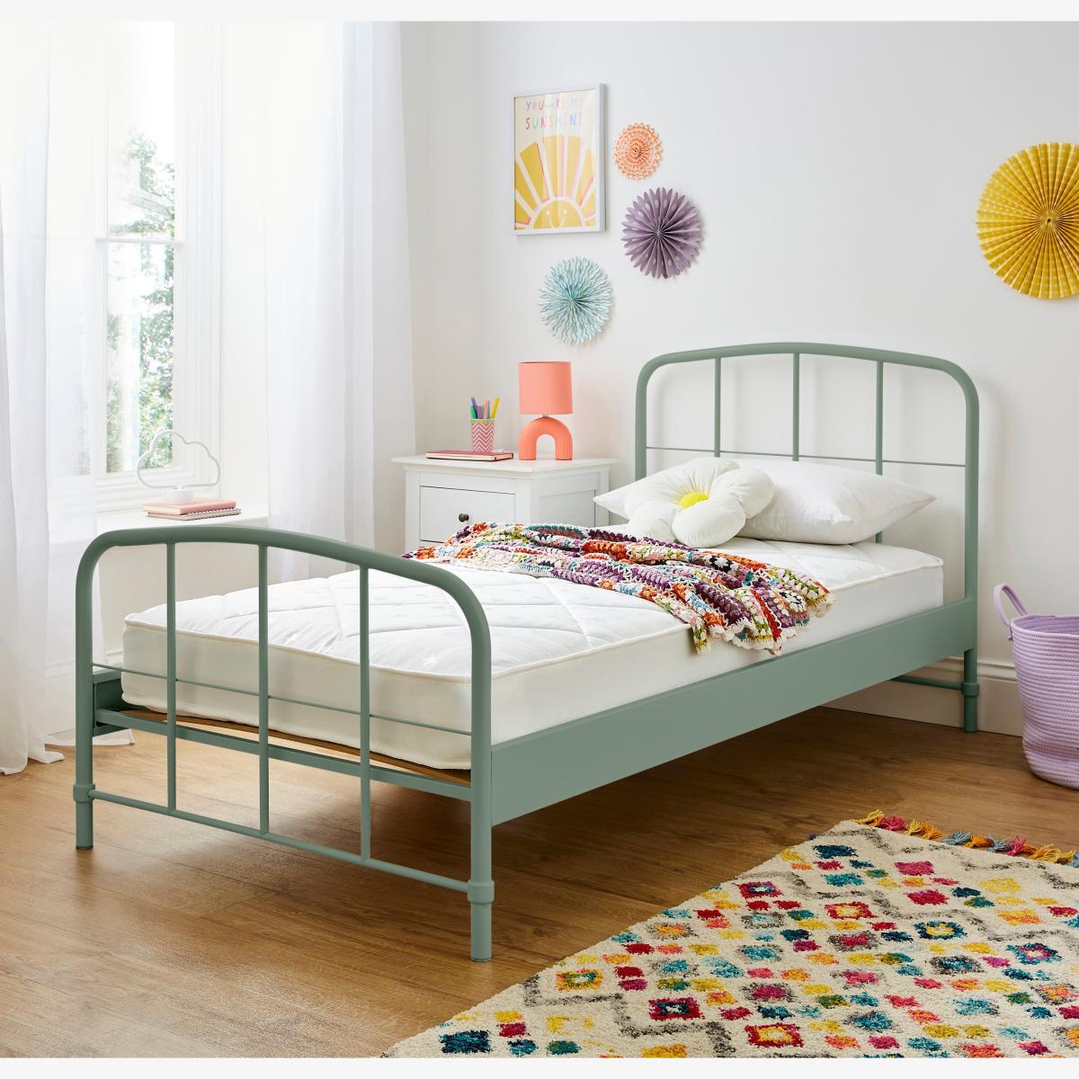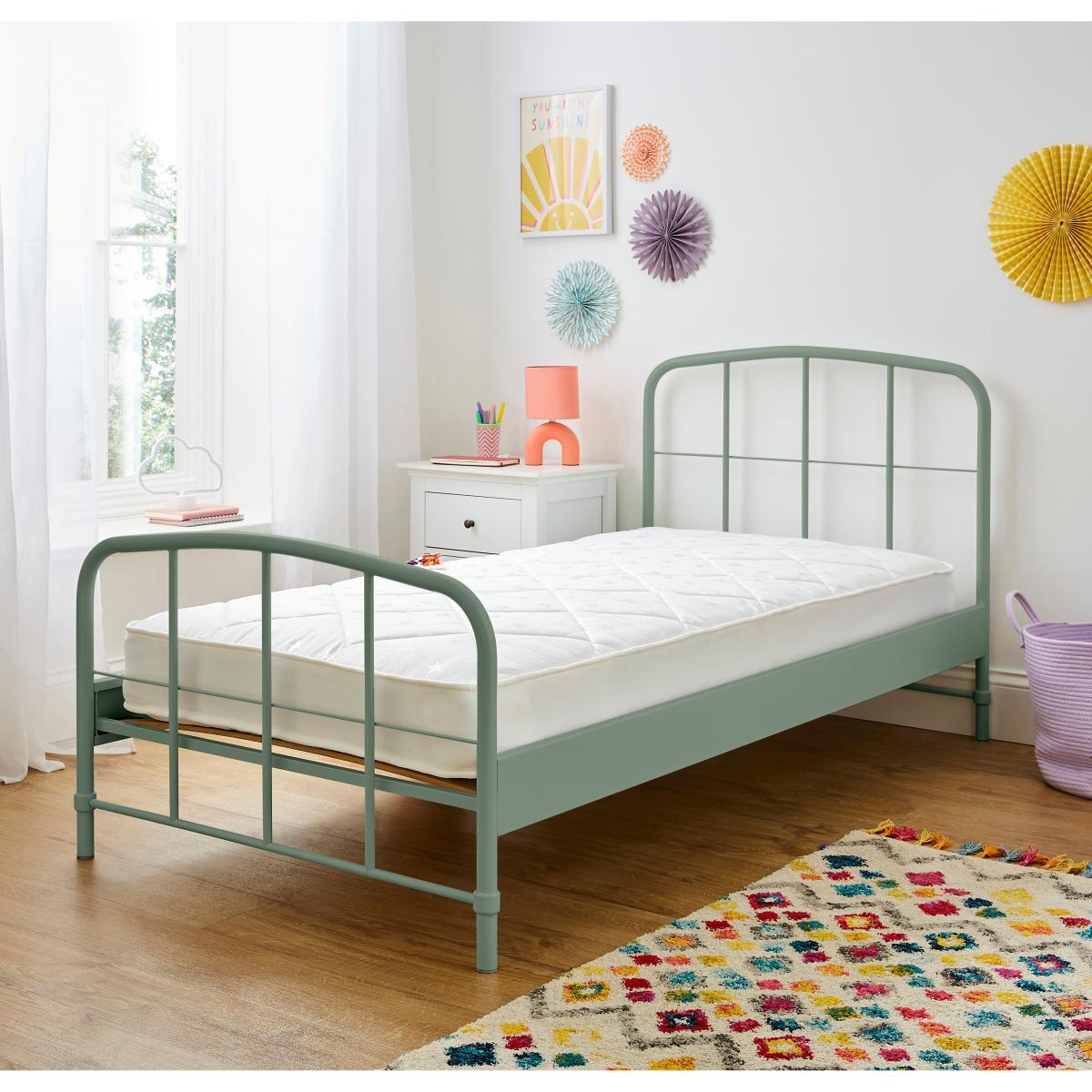 I love this kids’ bed for its versatile, modern design and the calm grey finish, making it easy to incorporate into a variety of interiors. It works particularly well in contemporary or minimalist bedrooms, providing a subtle, stylish foundation that can be easily complemented with colourful textiles or playful accessories. Practical styling tips include layering with cosy throws and cushions - a vivid, kids-friendly pop of colour or pattern can add personality. Choosing simple, functional furniture pieces like this bed allows for a flexible, clutter-free space that can grow with your child. The metal frame is durable and easy to maintain, making it ideal for busy bedrooms.