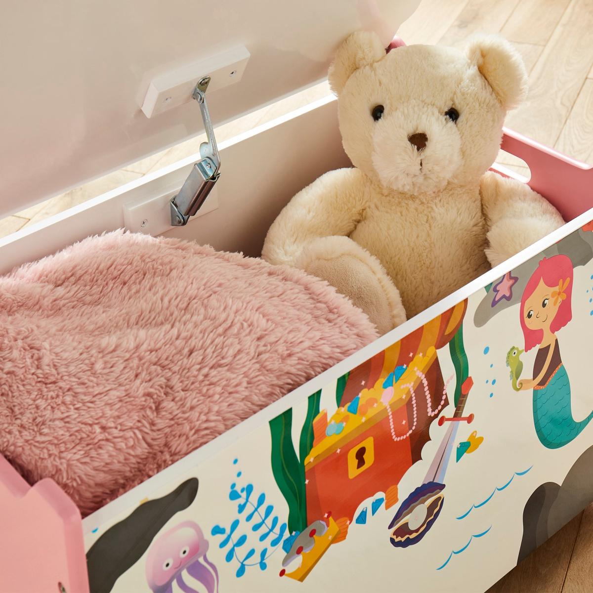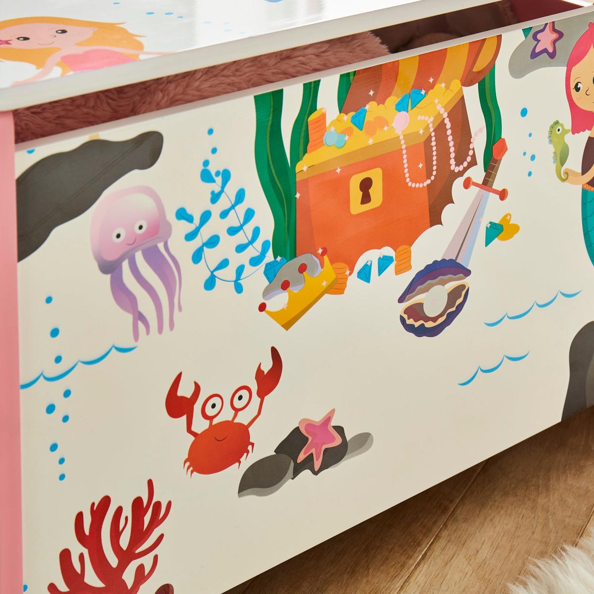 This fun and whimsical mermaid themed storage box is perfect for the little ones and makes cleaning up fun thanks to the colourful drawn mermaid designs on the front and top. This storage box provides ample amount of space, perfect for clearing away toys and craft items for a tidy looking home.