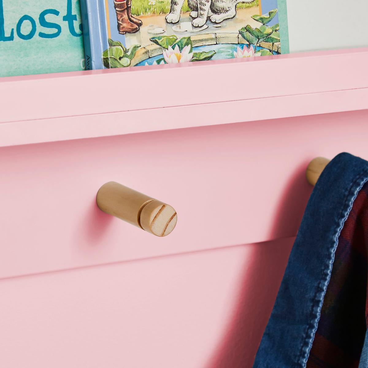 Dunelm Exclusive - Designed and Developed by Dunelm* Spacious wall mounted bookcase* 2 x shelves for book storage* 4 x hanging hooks* Available in 4 colourways Perfect for small bedrooms, your child can store all of their favourite novels and books on the Mia Small Wall Bookcase. This features two spacious bookshelves to store plenty of books as well as four hanging hooks so your little one can hang their bookbag, rucksack, coat and more! Available in other colourways to suit your childs bedroom aesthetic.
