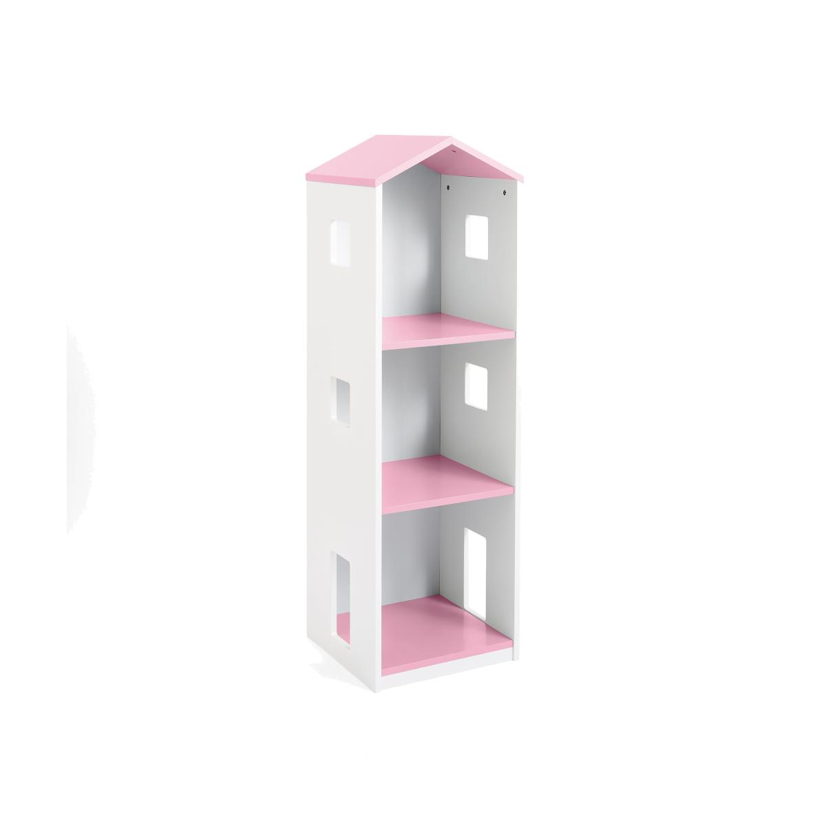 Dunelm Exclusive - Designed and Developed by Dunelm* Wooden Doll House* Laminated Finish* Easy to Assemble Crafted with rounded edges for safety and a pristine water paint finish for a touch of elegance, this bookcase is not just a storage solution but also a captivating play area in itself. Its whimsical dollhouse design sparks imagination and creativity, providing a delightful space for your child's treasured doll collection or storybook favourites. With three spacious tiers, it offers ample room to display and organise toys and books, fostering a love for organisation and reading.