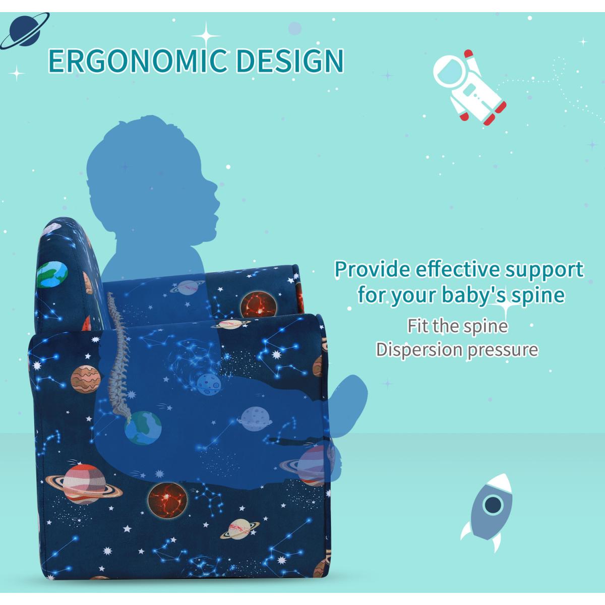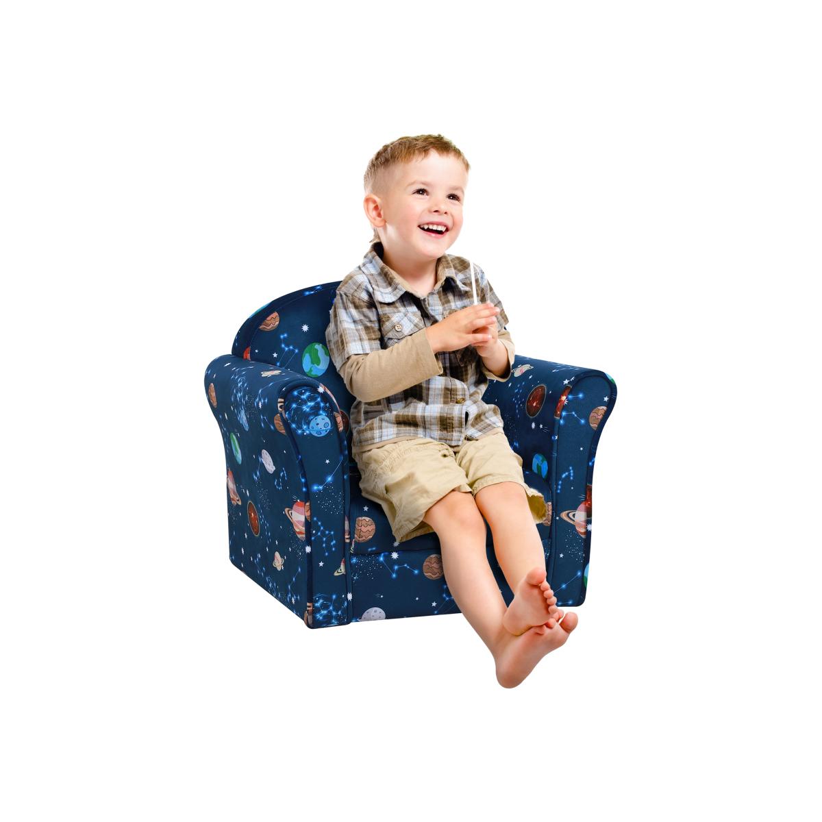 With this cool, planet-designed armchair, kids have a comfortable spot of their own, where they can play, watch TV, read and relax. Its wooden frame ensures the structure is tough and reliable, it can hold up to 45kg, whilst the thick foam is all over the chair for comfort. High back and arms add support for the body, promoting good posture - they can sit comfortably for long periods. A cool addition to their room, it gives them a personal space to sit.
