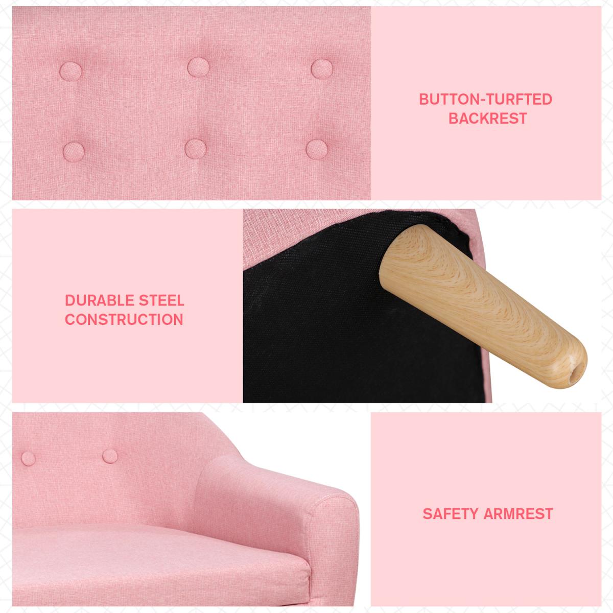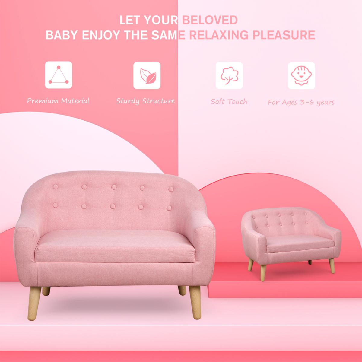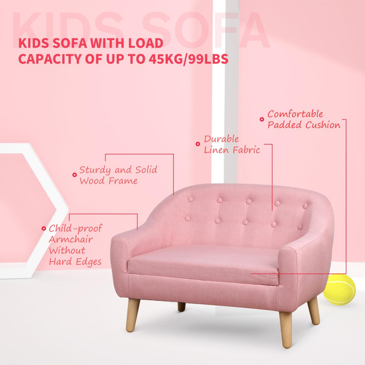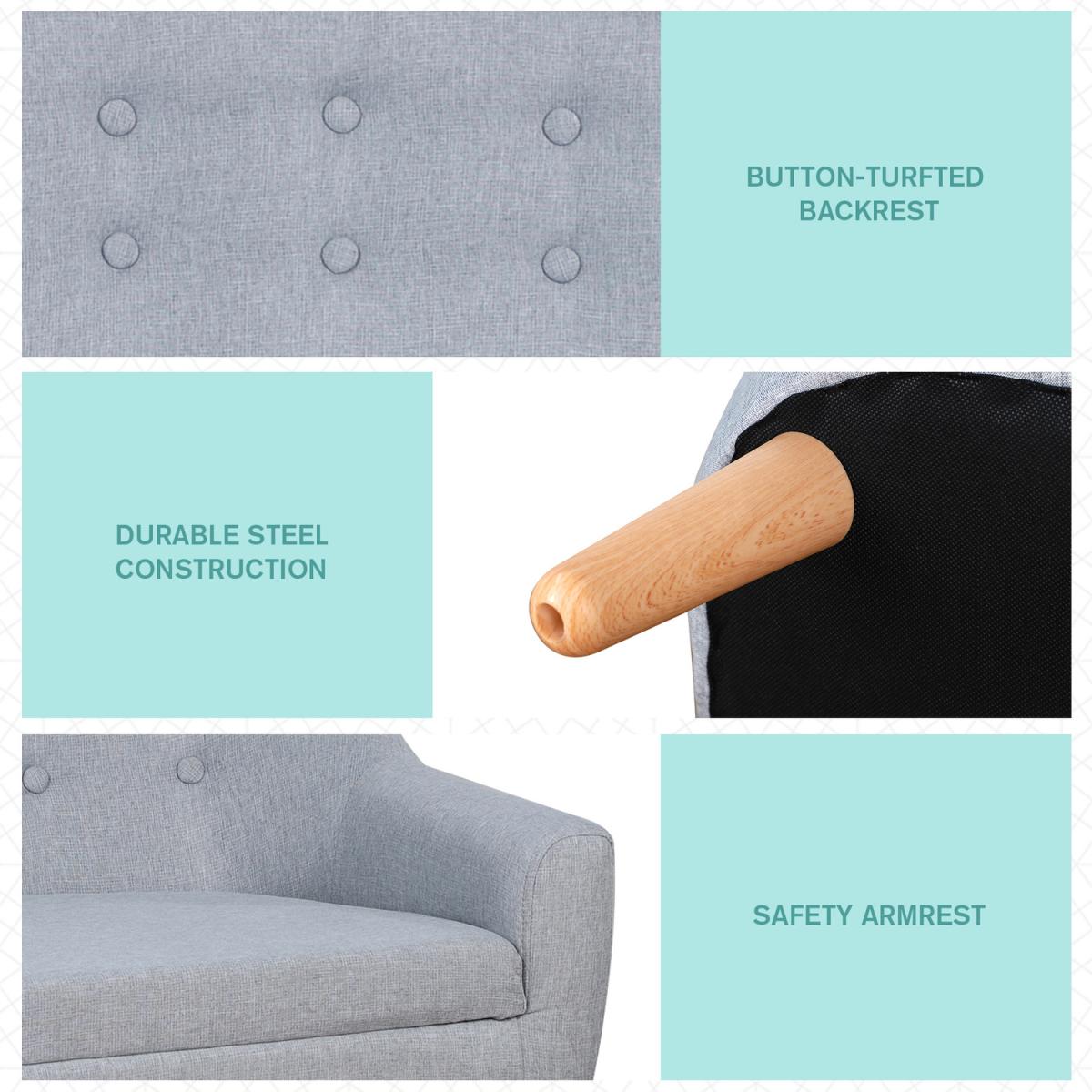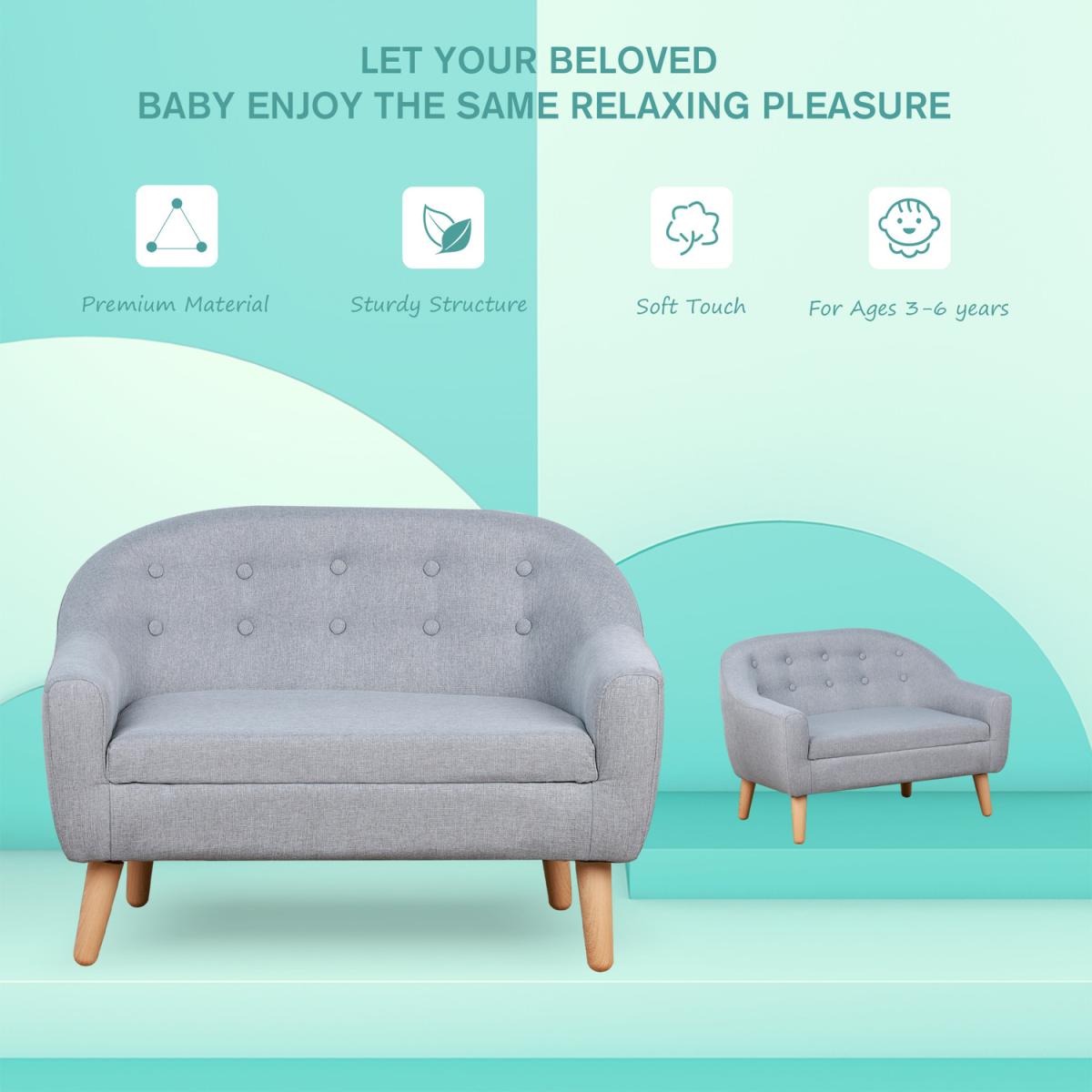 Kids sit comfortably with this large seat from HOMCOM. Frame made from wood for a tough structure, it's fitted with a padded seat for comfort, wrapped in linen-look upholstery for style and smoothness-to-the-skin. High back and armrests for support as they lean back, it's finished with four wooden legs for support.
