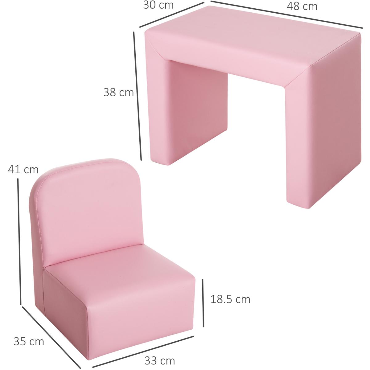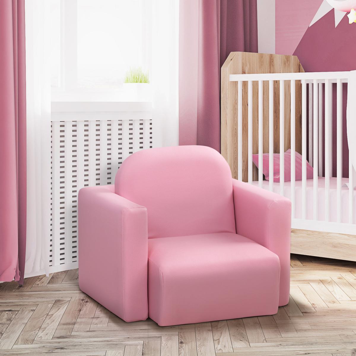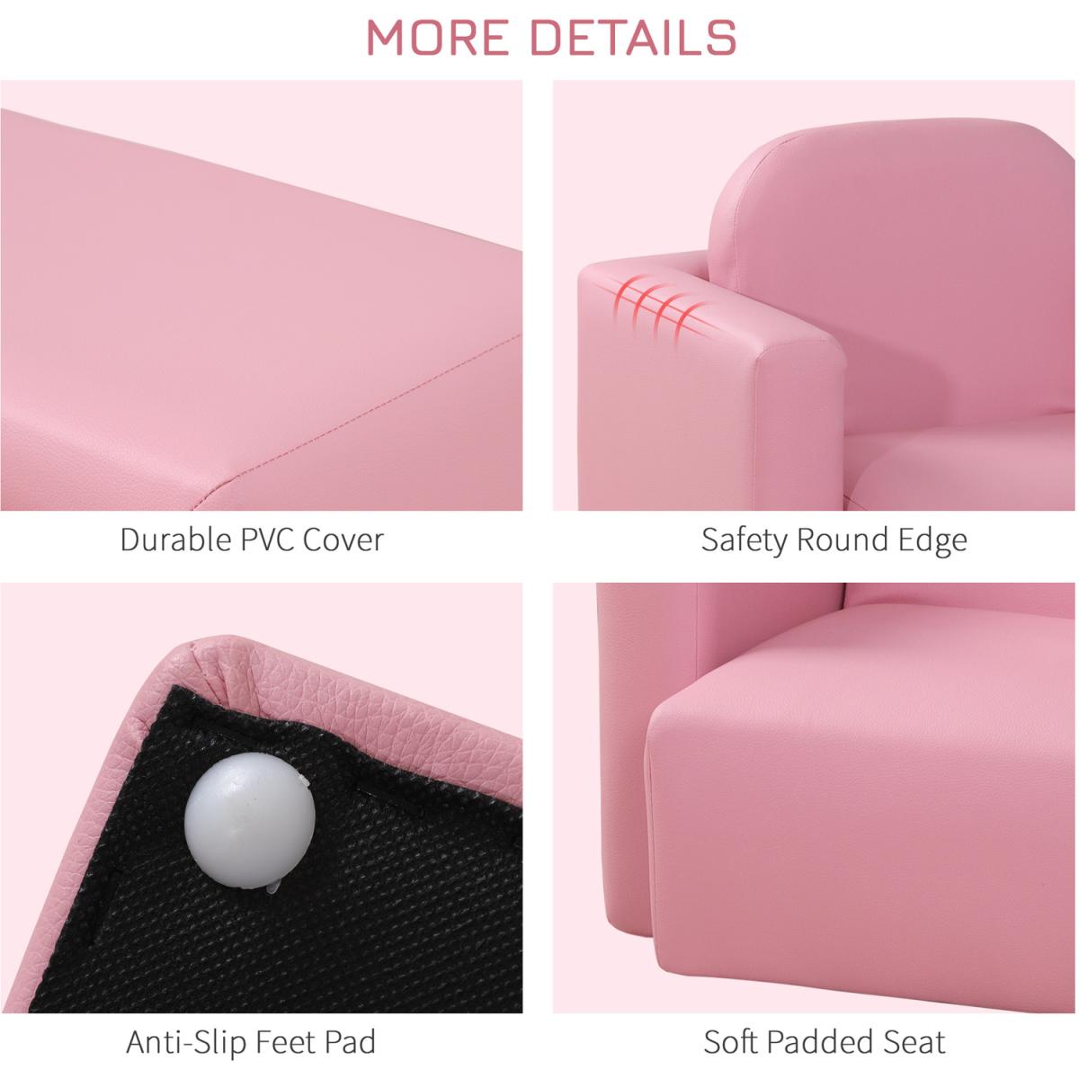 This stylish yet practical mini sofa from HOMCOM is an ideal solution for any child to have their own seating and workspace. With its 2 in 1 combination, they can use it as an armchiar or convert it as a chair and table by turning over the bottom piece which is used as an armrest. Made from a wooden frame construction and covered with plastic with a sponge filling. It provides a great place for them to feel comfortable and secure. Ideal for kids room, family room it will be practical way for them to relax or use for any activities they wish like crafts, drawing and puzzles or any other play.