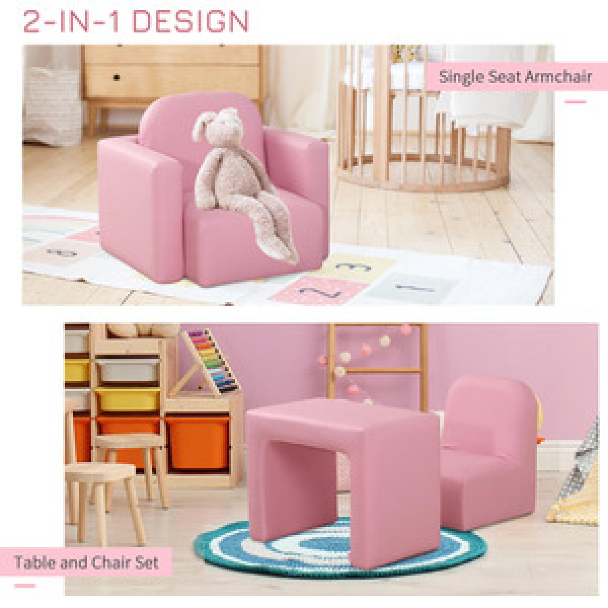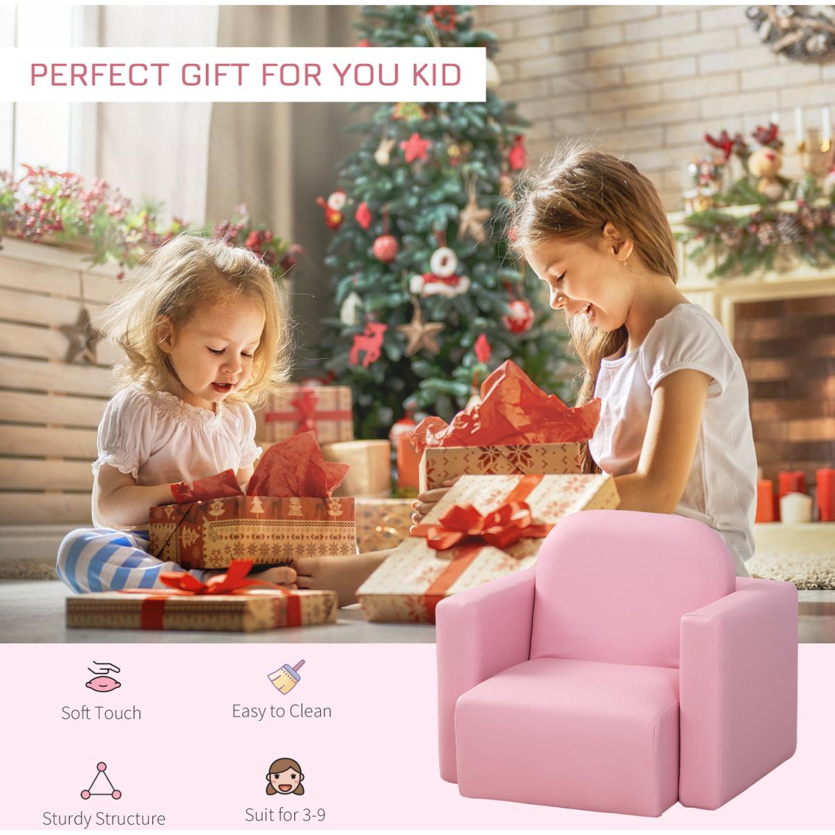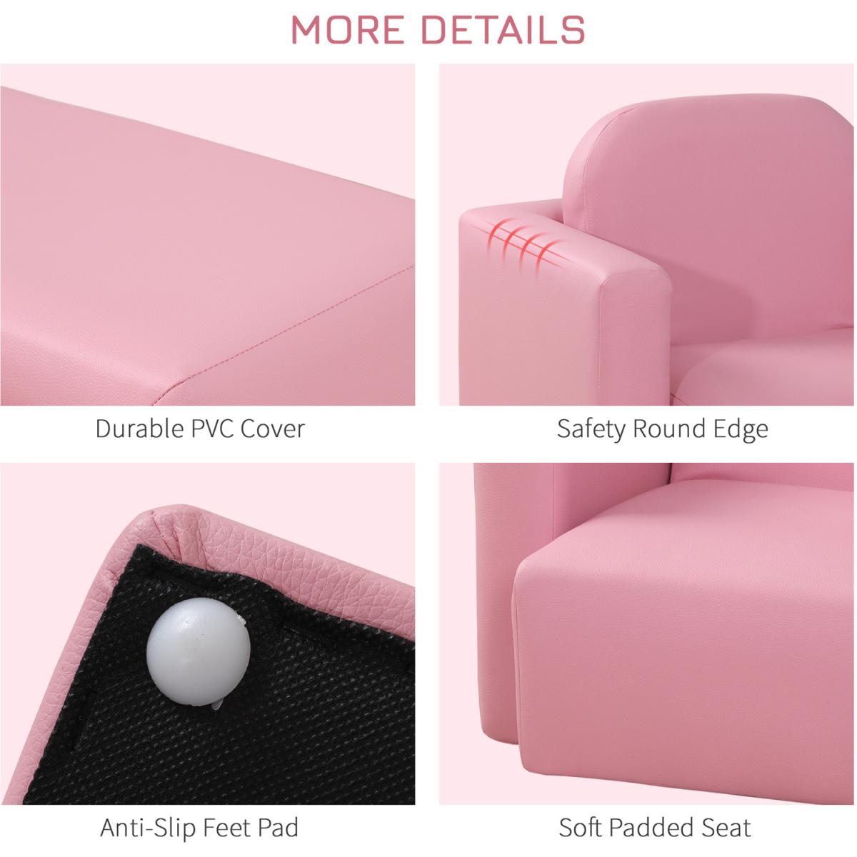This stylish yet practical mini sofa from HOMCOM is an ideal solution for any child to have their own seating and workspace. With its 2 in 1 combination, they can use it as an armchair or convert it as a chair and table by turning over the bottom piece which is used as an armrest. Made from a wooden frame construction and covered with PVC with a sponge filling. It provides a great place for them to feel comfortable and secure. Ideal for kids room, the family room it will be a practical way for them to relax or use for any activities they wish like crafts, drawing and puzzles or any other play.