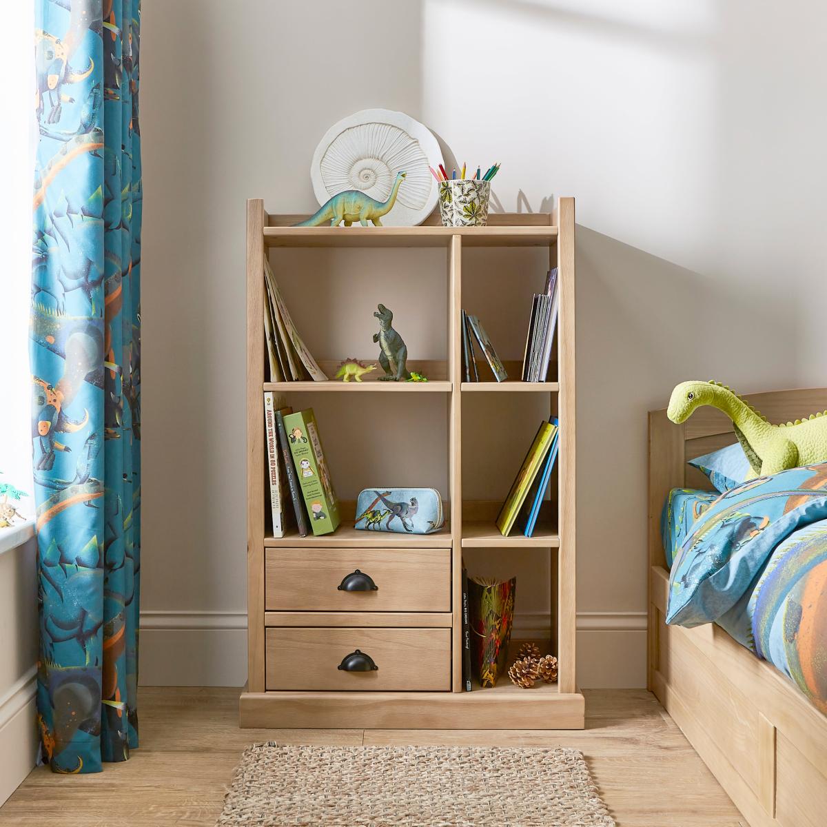 I love this pine bookcase for its simple, natural aesthetic that effortlessly adds warmth to any child’s room. Its compact size makes it quite versatile, fitting well into both classic and contemporary interiors. I’d style it with colourful storage boxes or baskets in the lower drawers to keep toys and essentials organised, while decorating the open shelves with a mix of books, soft toys, and small decorative pieces for a playful, yet tidy look. It works particularly well in neutral or pastel palettes, and pairing it with other natural materials enhances a cosy,Childrens Storage’ vibe. Practical tips include using vertical space with some wall-mounted accessories or book ledges, so the space remains uncluttered and functional as your child grows.