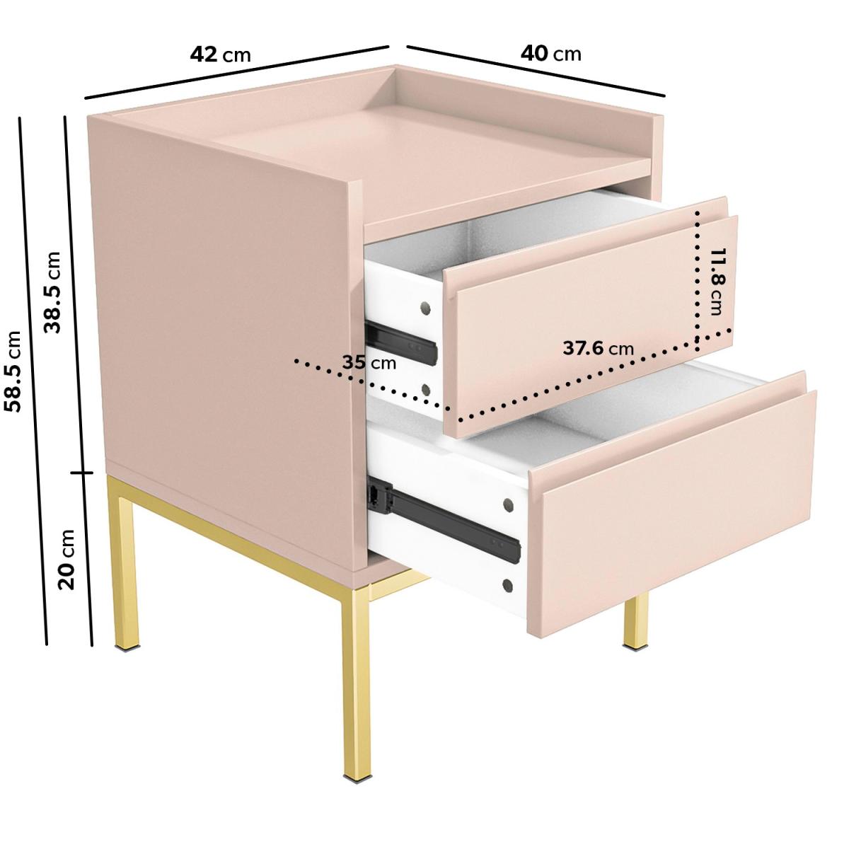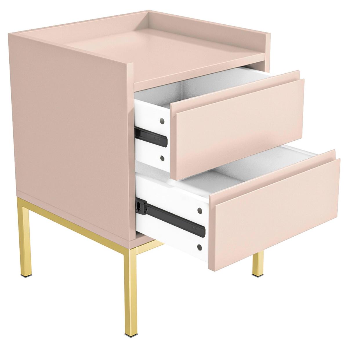 This stunning baby pink bedside table is a great addition to any kids bedroom. The matt finish contrasts with the shiny gold legs for a contemporary finish. Finish the look with the matching items or check out the other colours in the range, just search ‘Zion'.