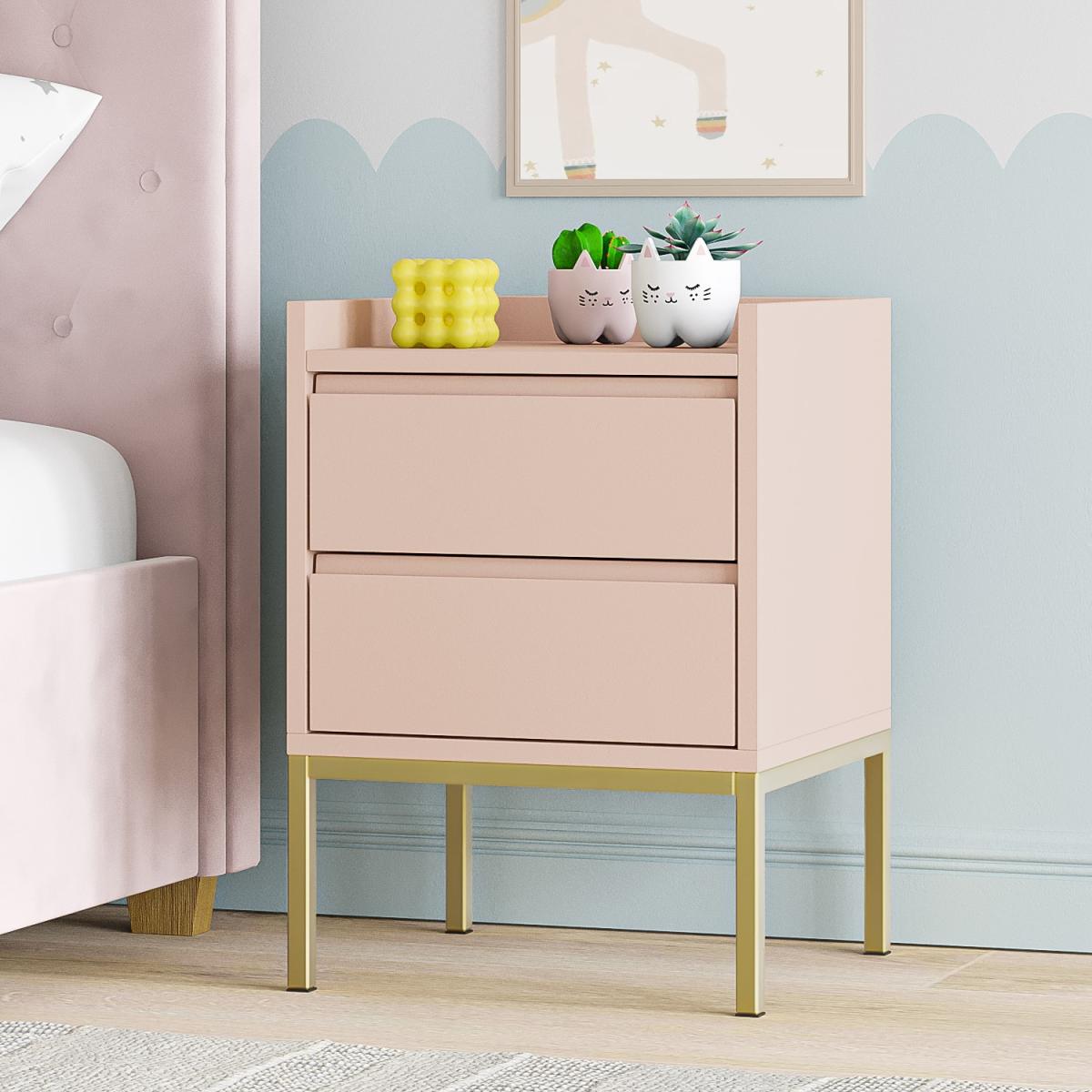 Kids Pink Bedside Table with 2 Drawers - Zion
