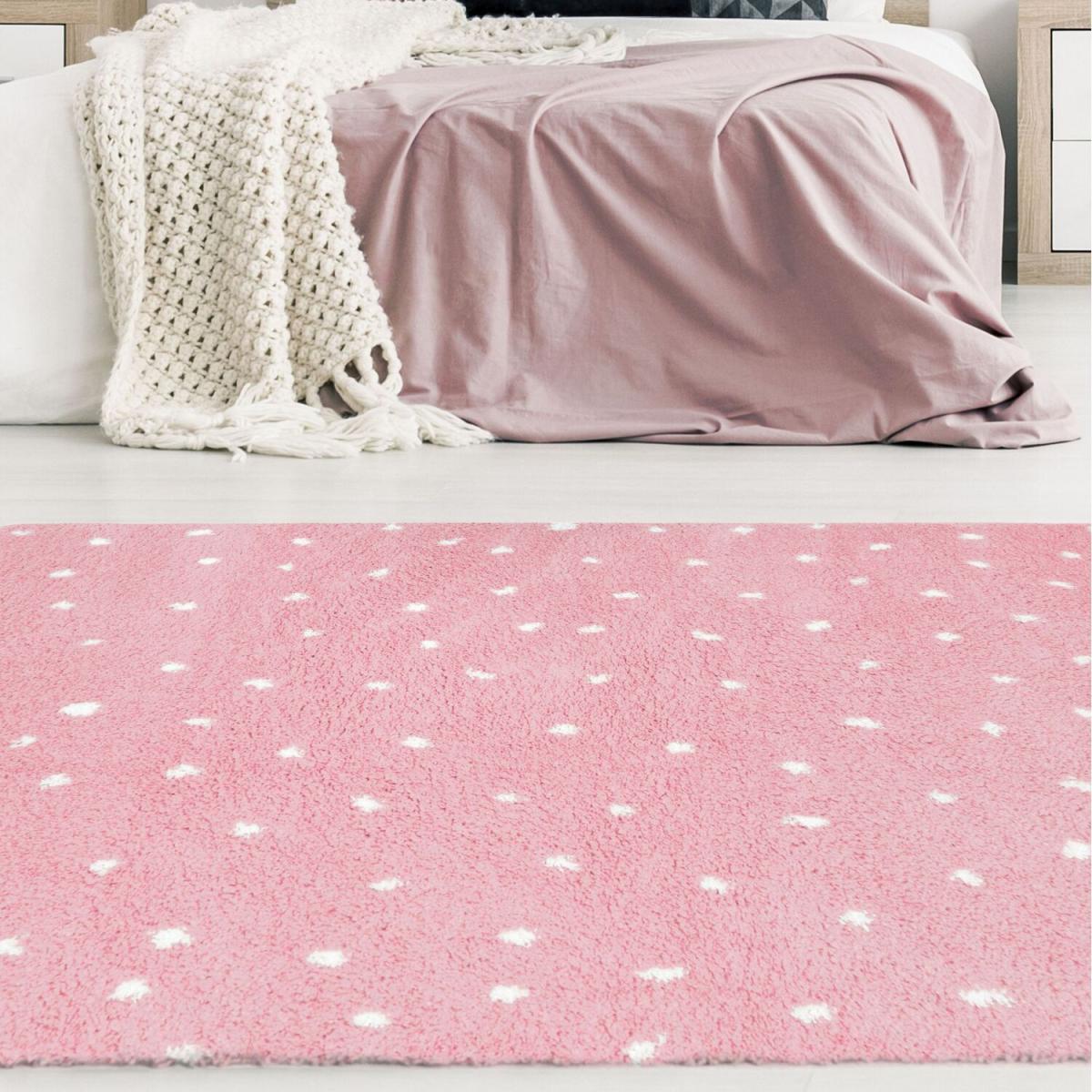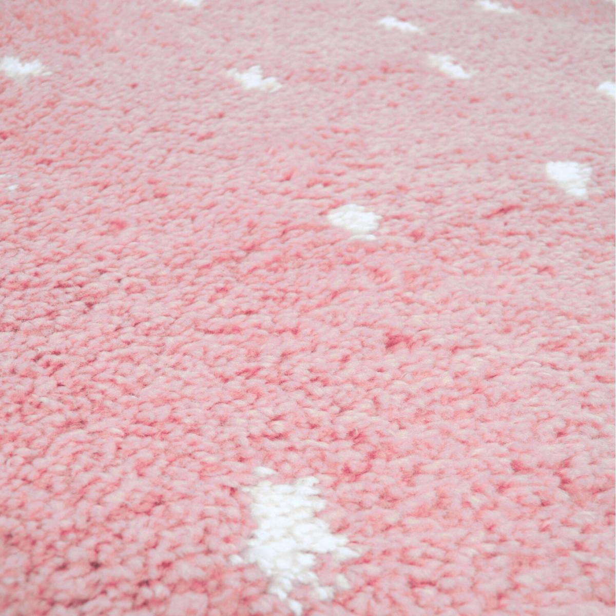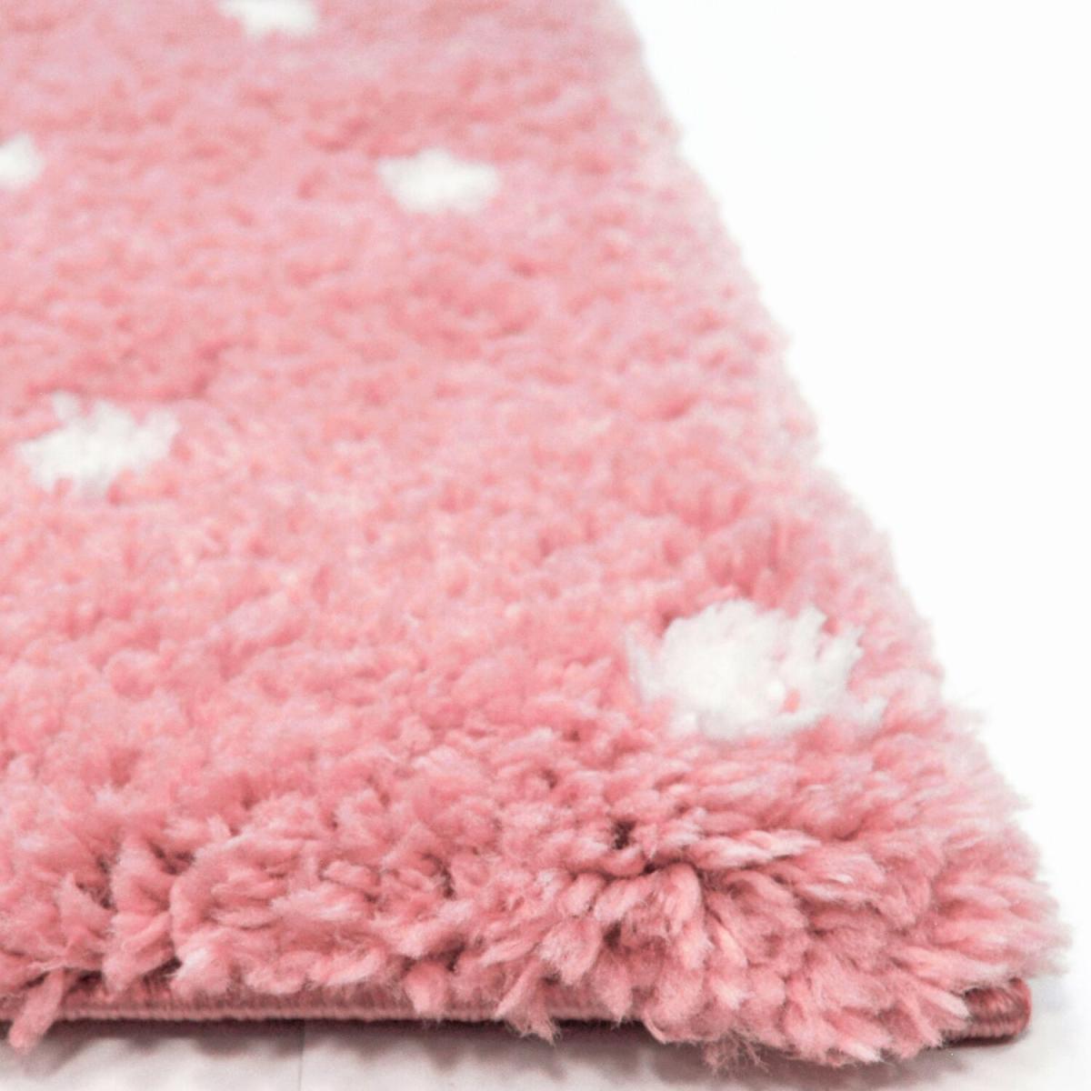 Kids Pink Spotty Soft Shaggy Bedroom Rug - Brae - Pink