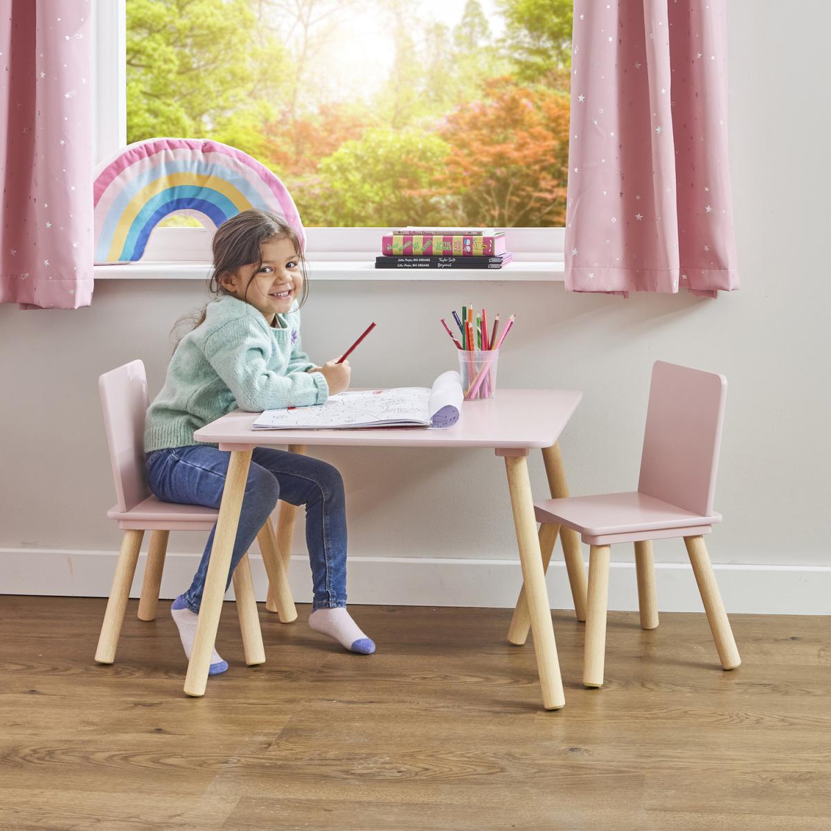 I love this little set because it’s perfect for creating a dedicated craft or play corner in a child's bedroom or playroom. The soft pink tone lends itself well to pastel-themed interiors or modernen spaces with a touch of colour. It works particularly well in light, neutral settings where it can add a subtle pop of colour, or in a whimsical, child-friendly space with other pastel accessories. Practical styling tips include pairing it with colourful storage baskets or imaginative wall art to make the area lively and inviting. The straightforward design also means it’s easy to incorporate into various decorating styles, from Scandi minimalism to more playful, eclectic themes.