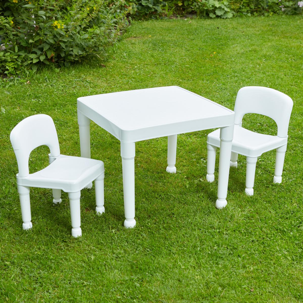 Ideal set for small children to sit, play and do crafts. This kids table and 2 chairs set is lightweight but sturdy and can easily be moved from room to room or can be taken outside. Due to its durable plastic material, this table and chair set can withstand any weather. With its fun and vibrant colours, it can add a fun pop of colour into your child's space. Alternatively go for the stylish white set for a classic, contemporary feel in your child's space. We have safety-tested this set for strength and stability. The set is supplied flat packed with easy to use instructions. No tools are needed, simply click the pieces together.