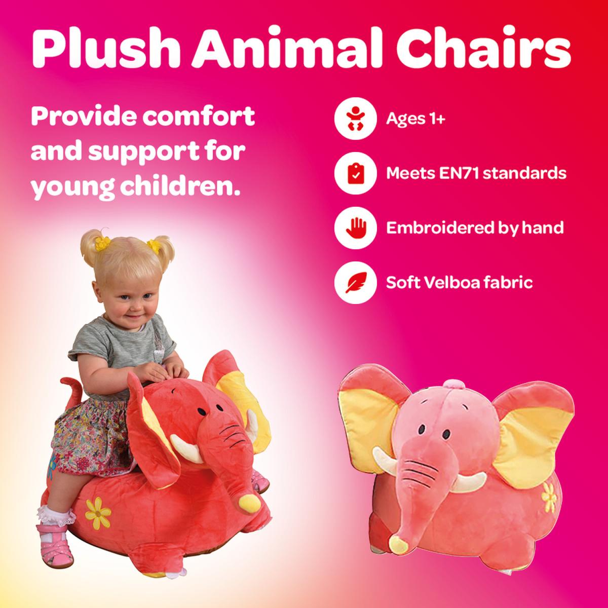 Introducing our Kids Plush Animal Chairs ideal for your child to sit back relax, read or play on. Available in a range of animals and colours so your child is spoilt for choice. Create a fun and comfortable area in your child's bedroom or playroom. All of our plush animals have cute features such as smiling faces, little feet and tails. Made of high-quality plush velboa material with a soft polypropylene cotton filling that offers your child comfort and support. The velboa fabric is hardwearing and soft meaning they make the perfect cuddle buddies. Our plush animal chairs have been tested and they are EN71 quality.