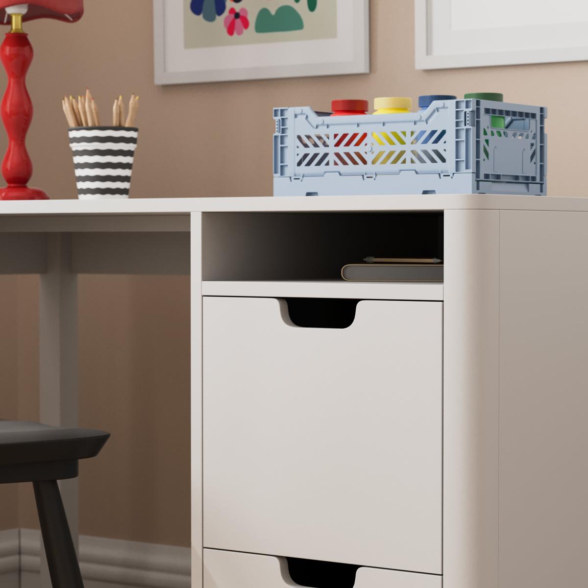 I’m a big fan of the Raya desk for its clean lines and durable finish - it’s easy to wipe down after art projects and homework spills. Its neutral white tone makes it a versatile choice, fitting seamlessly into Scandi-style bedrooms or more colourful, eclectic playrooms. To style it, keep essentials within reach by pairing the desk with a slim pencil cup and a low-profile shelf above for books or baskets. Add a small, adjustable lamp in a fun colour to personalise the space, and use matching storage drawers underneath to keep clutter out of sight and encourage good organisation habits.