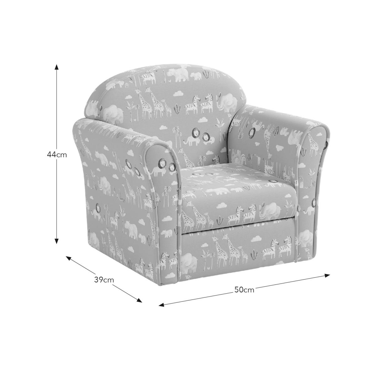 I love the kids safari armchair for its playful yet subtle design, making it a versatile addition to many children’s interiors. Its gentle green hue with safari-inspired print works really well in a neutral or woodland-themed nursery or playroom, adding character without overwhelming the space. To style it effectively, consider pairing it with natural textures like wooden toys or woven rugs to enhance the woodland vibe. It's also practical because the size is perfect for little ones, and the fabric looks durable enough to withstand everyday use. For a cohesive look, keep the surrounding décor in soft, calming tones to create a cosy corner for reading or playtime.