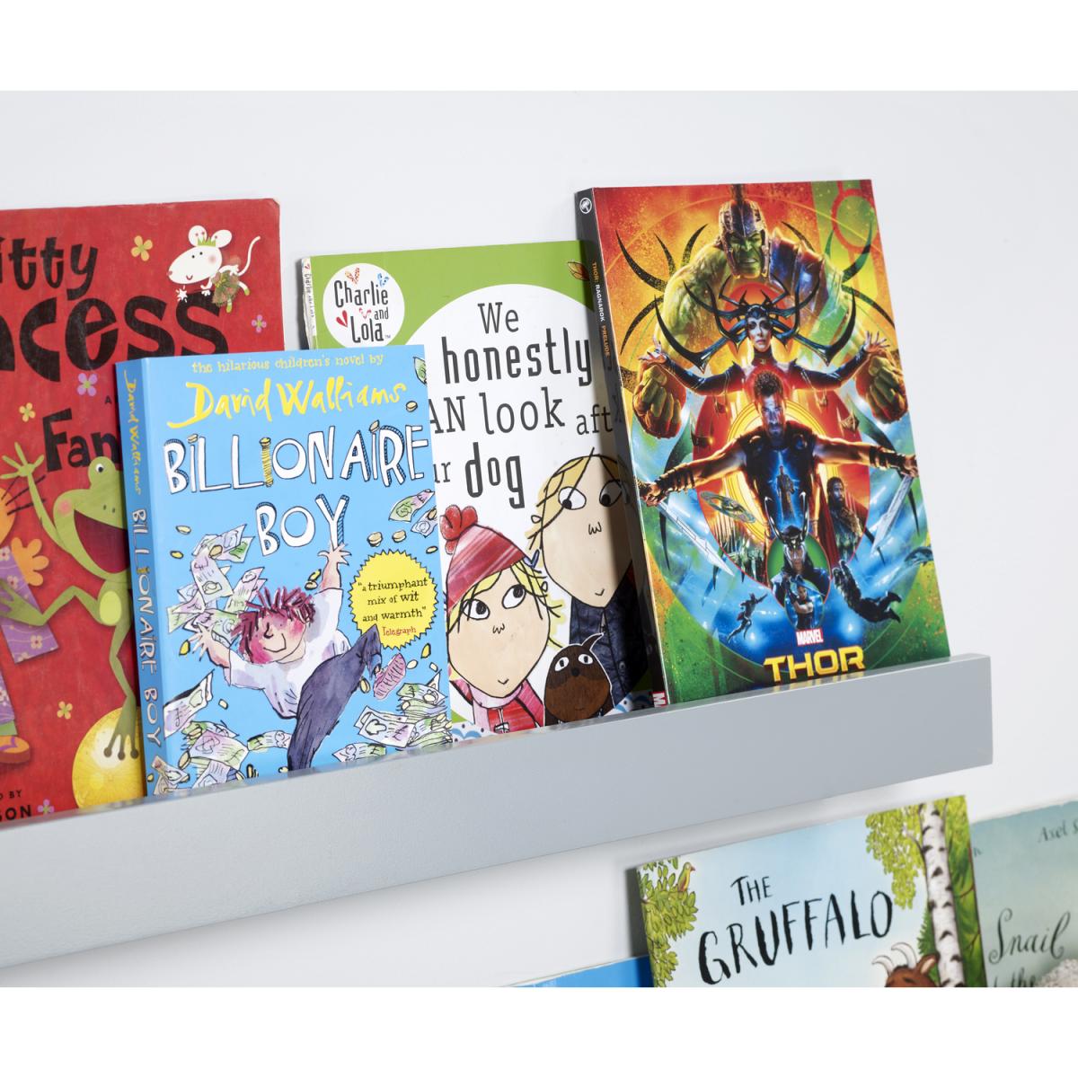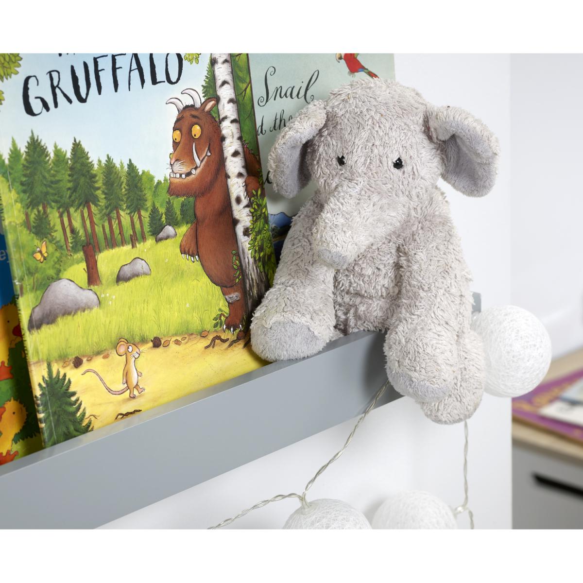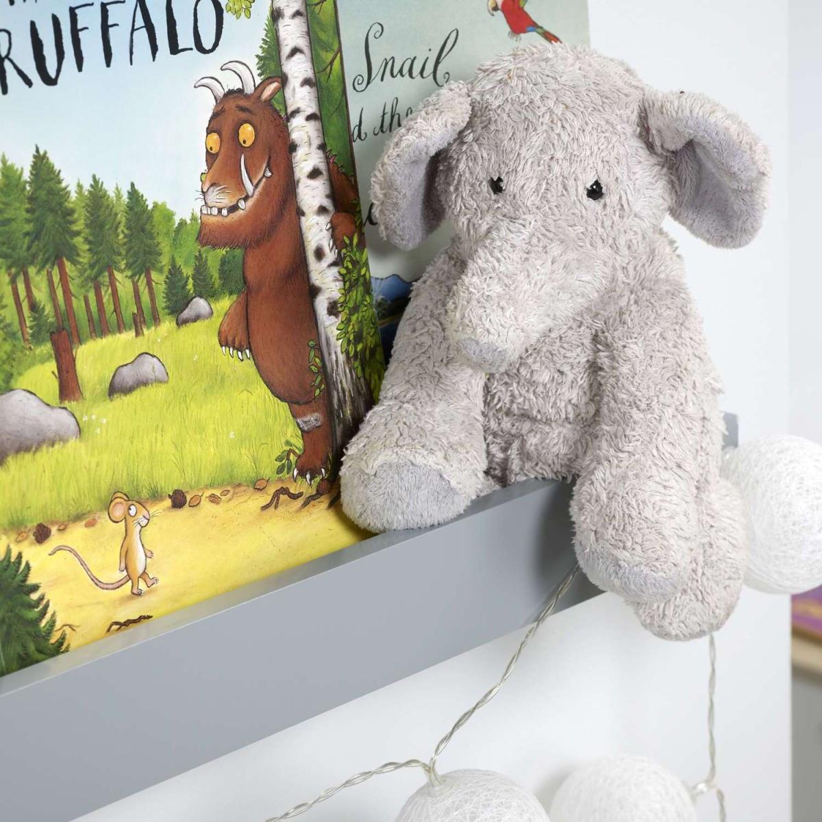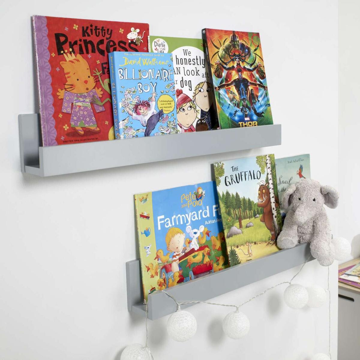 I love these grey wall-shelving units for their clean, modern look that seamlessly suits a variety of children’s interiors. Their neutral grey tone makes them versatile, working well in both contemporary and more playful schoolroom or nursery themes. Practical styling tips include using the top shelf for decorative items or favourite books, while the lower shelf can be perfect for storage bins or organising toys. These shelves also look great with colour-coordinated or contrasting storage baskets, and the addition of fairy lights or small decor pieces like the teddy shown can really personalise the space. They’re pre-assembled, which makes installation straightforward, and their compact design helps keep clutter off the floor while making books and essentials easily accessible.