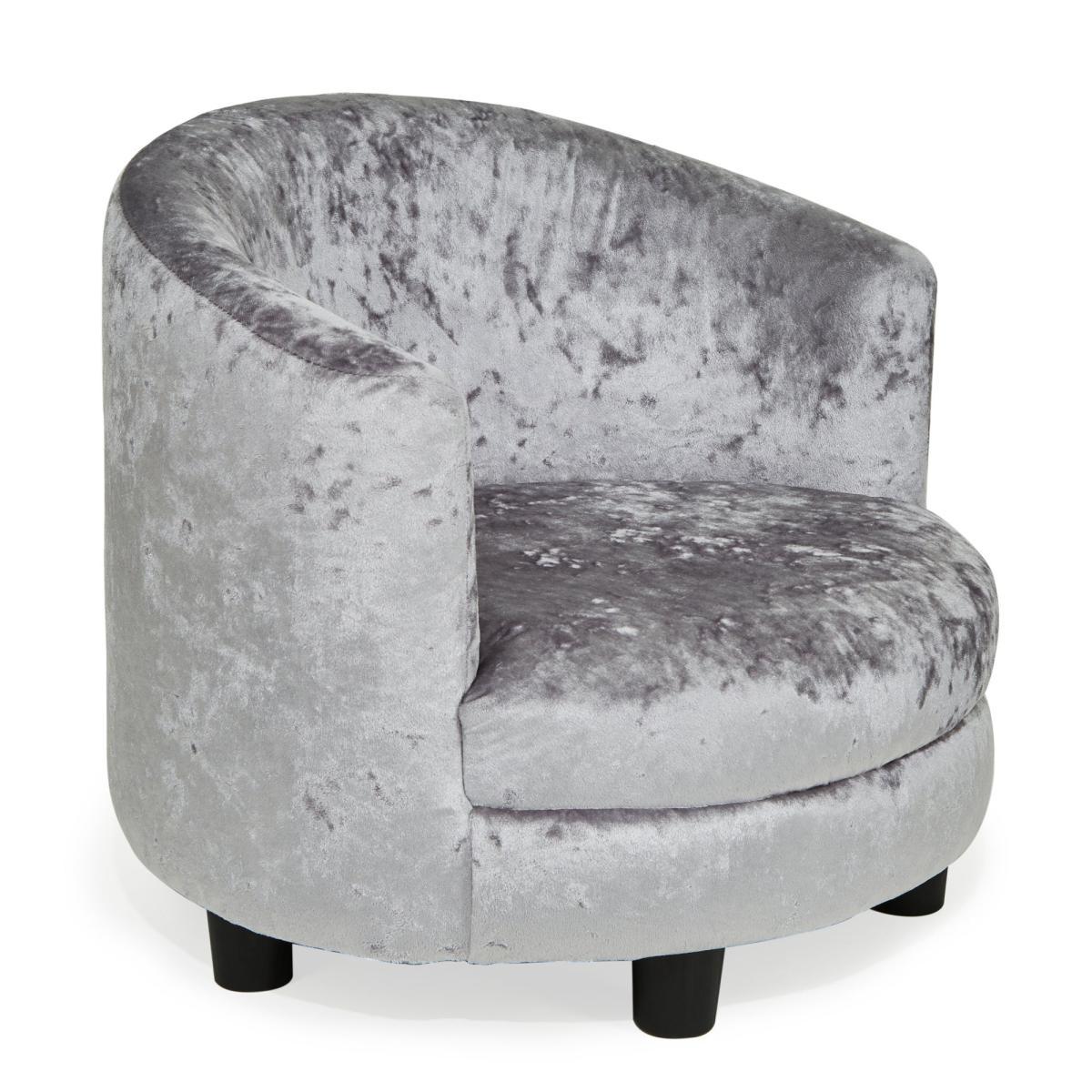 Ergonomically designed for kids' healthy seating, this silver crushed velvet chair will make a stylish addition to any kids room. Fully assembled, this chair is easy to clean and crafted from UKFR polyester material.