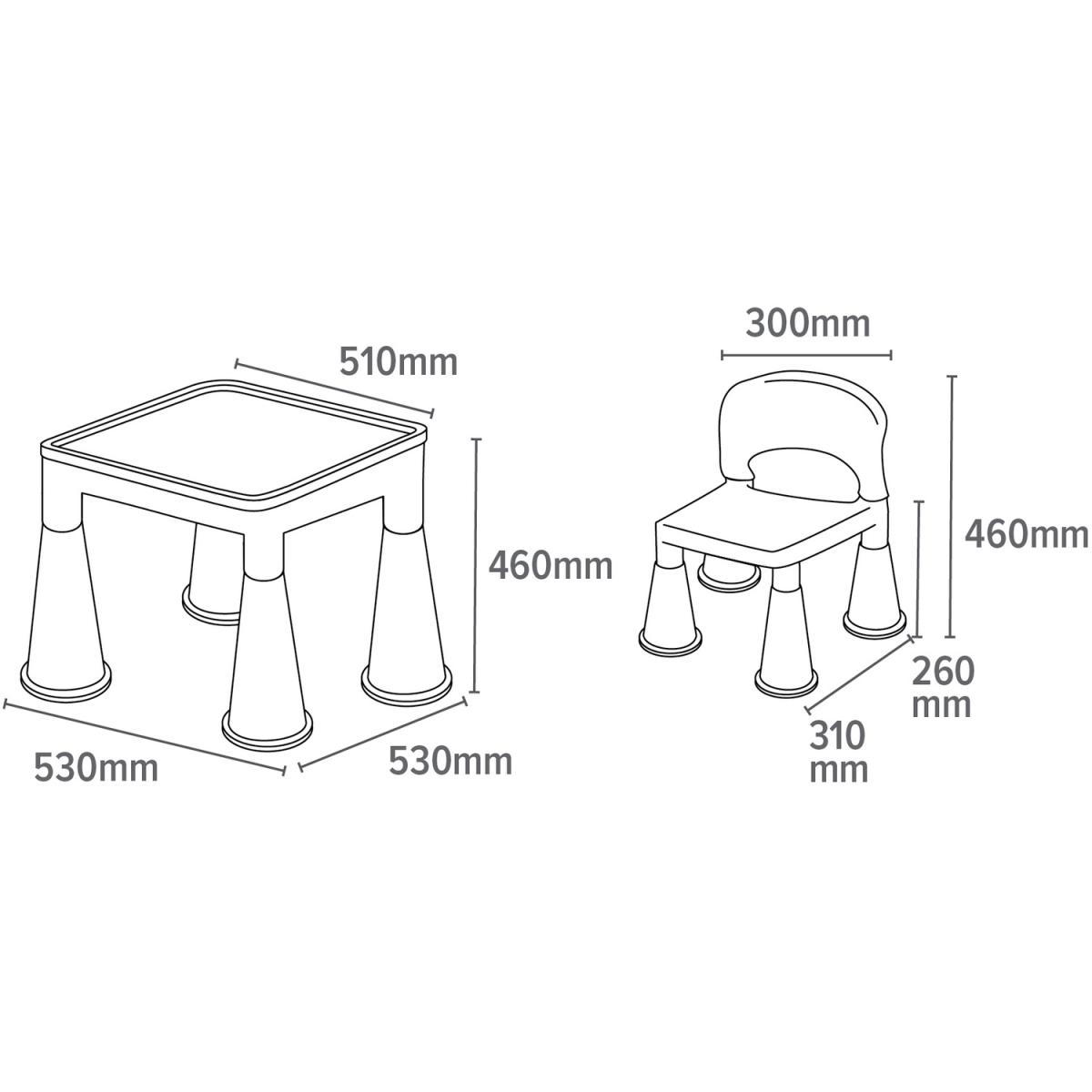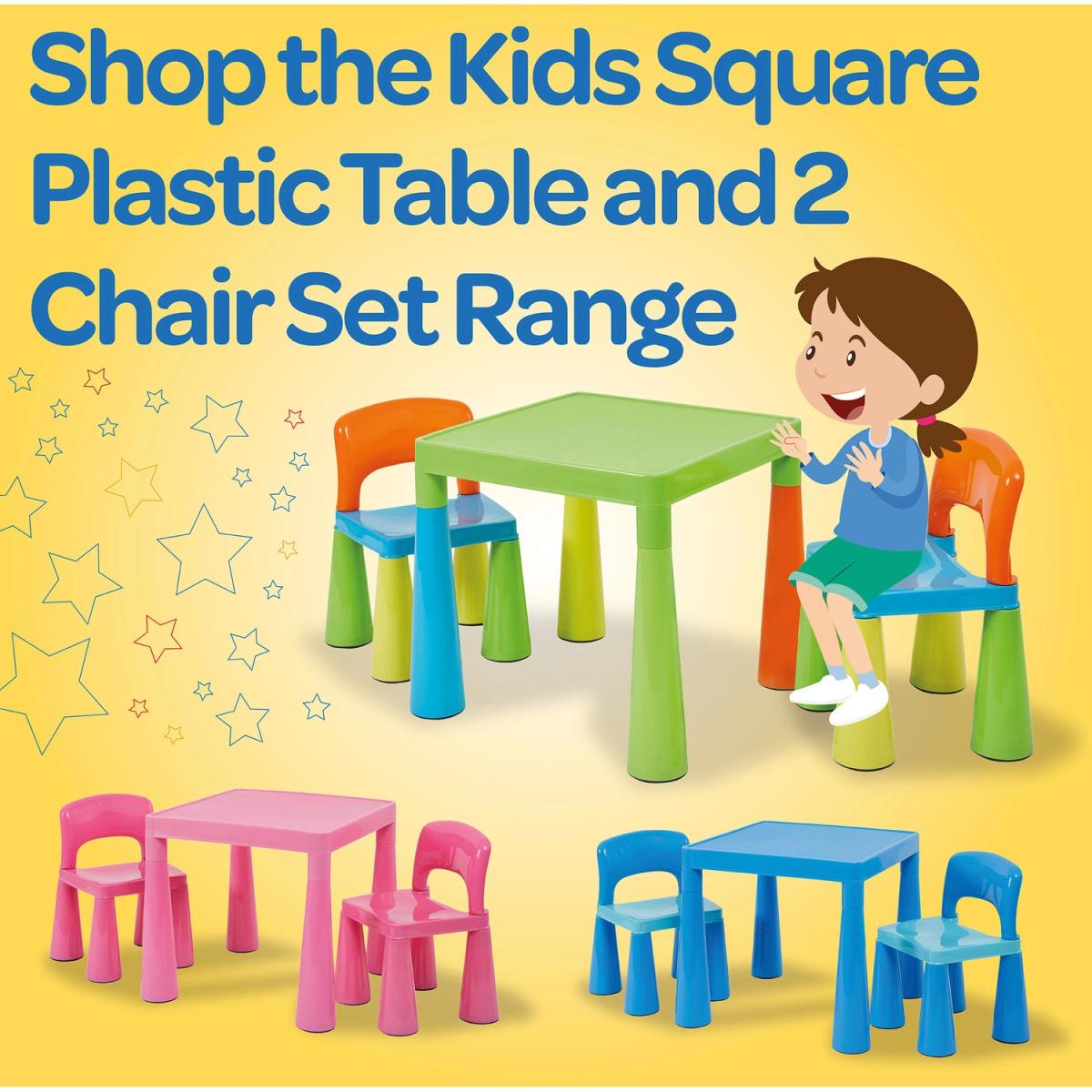 Add a pop of colour to your children's bedroom or playroom with our Kids Plastic Table and Chair Set. This set is an ideal first table and chairs for your little ones. Your child can eat, play, read and draw with ease. Comes in a range of colours all you have to do is choose. This set is great for everyday purposes and can withstand whatever your little ones throw at it. Whether your child wants to play inside or outside this table and chair set is lightweight so is easy to move around. Supplied flat packed with easy to read instructions.