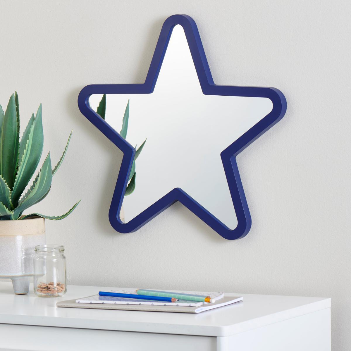 I really like this star-shaped mirror for adding a playful yet sleek touch to a child's room or nursery. The navy border offers a bold pop of colour that can complement a modern, coastal, or nautical theme. It works well in both neutral and colourful interiors, providing visual interest without overwhelming the space. Practical styling tips include placing it above a desk or dresser to serve as both a functional mirror and a decorative accent, or grouping it with matching accessories for a cohesive look. Its fun shape makes it a great focal point, especially in rooms designed to feel lively and inviting.