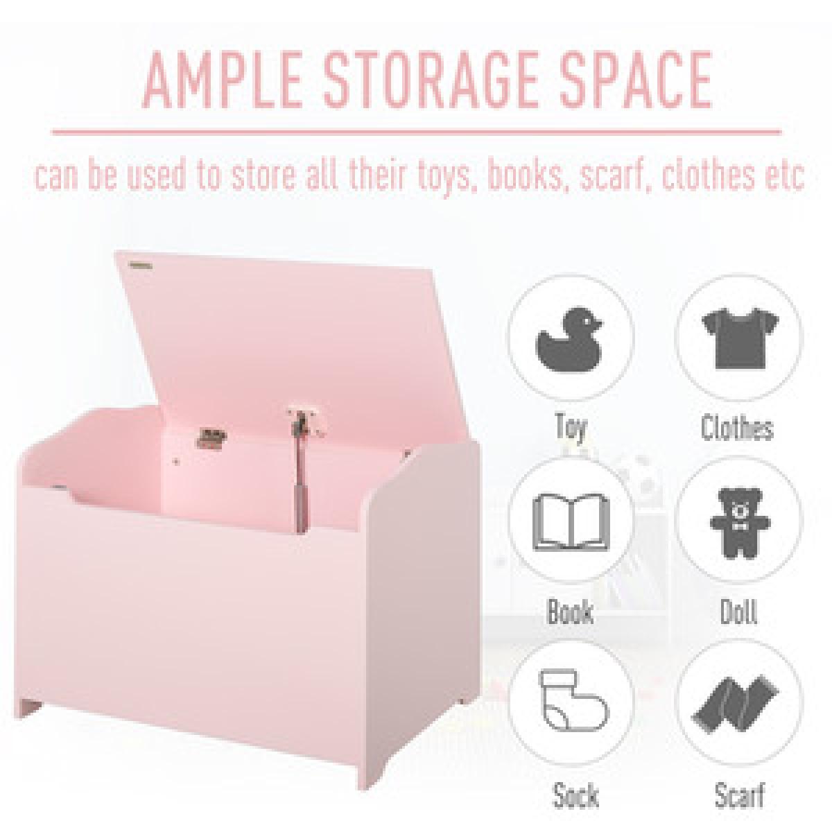 Give them their own place to keep toys, books, shoes and more stored with this cute pink box from HOMCOM. The safety pneumatic rod ensures the lid opens slowly and prevents it from slamming shut suddenly - they won't catch their fingers and hurt themselves. It's made from MDF, so it's solid and durable and can cope with daily demands from your child for a lasting addition to their playroom or bedroom. A great way to teach them how to keep their space clean and tidy for the years ahead.