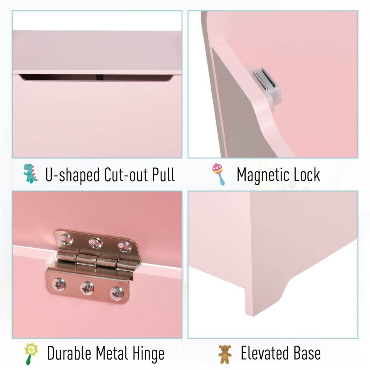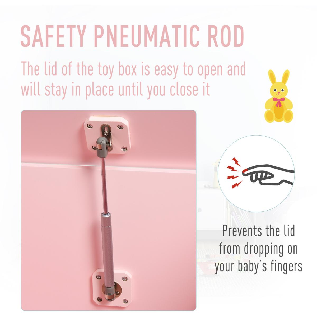 Give them their own place to keep toys, books, shoes and more stored with this cute pink box from HOMCOM. The safety pneumatic rod ensures the lid opens slowly and prevents it from slamming shut suddenly - they won't catch their fingers and hurt themselves. It's made from MDF, so it's solid and durable and can cope with daily demands from your child for a lasting addition to their playroom or bedroom. A great way to teach them how to keep their space clean and tidy for the years ahead.