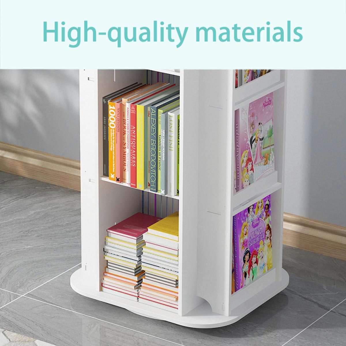Discover our Kid's Swivel Wooden Bookcase, meticulously crafted from durable and non-toxic WPC materials, guaranteeing a safe environment for your little readers. Its 360-degree swivel design ensures effortless access to books, promoting a love for reading early on. Equipped with 4 spacious shelves and 6 medium shelves featuring baffles, this bookcase provides optimal organization for both books and toys. A perfect addition to your child's room, this bookcase blends functionality with enjoyment, encouraging a seamless balance between learning and play.