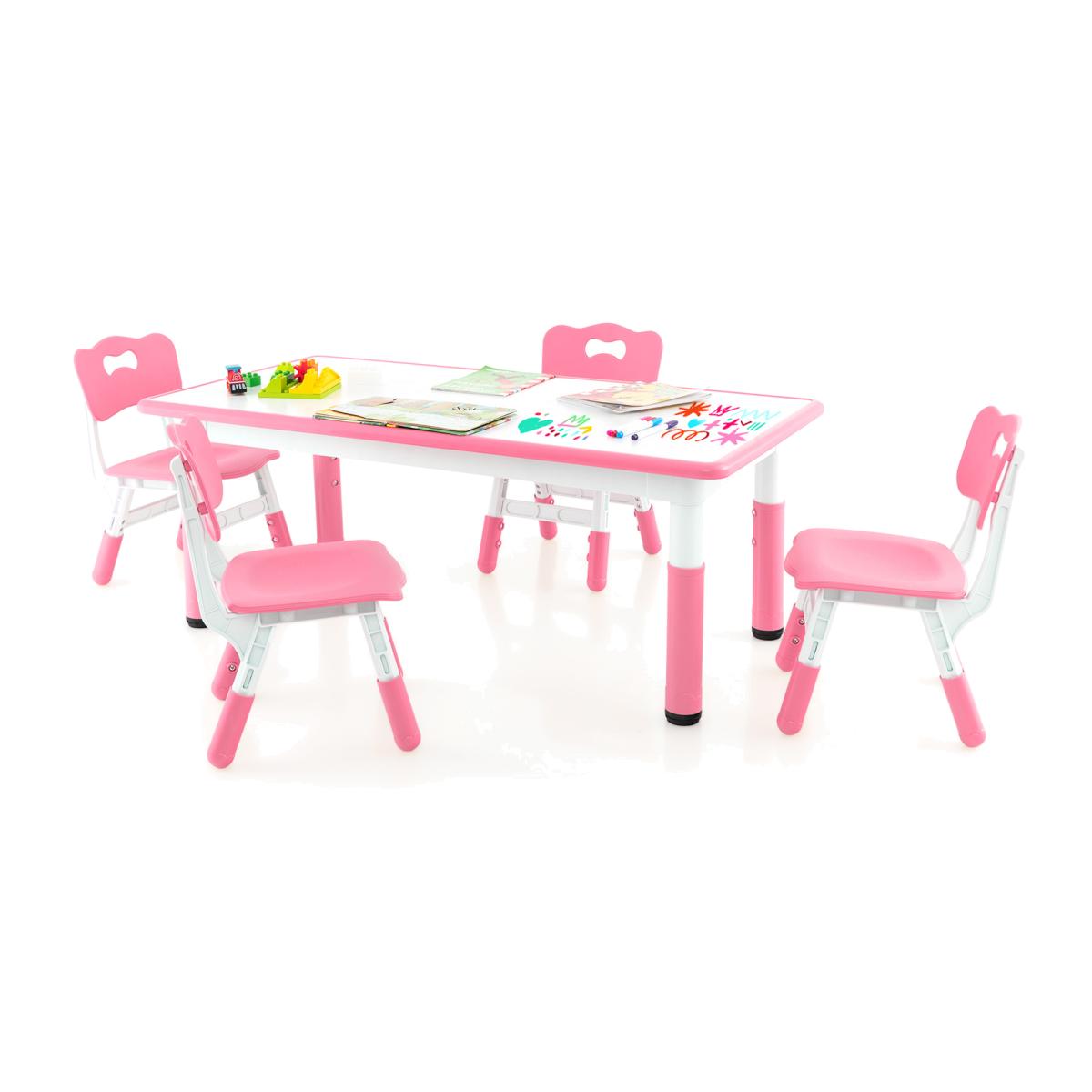 Allow your kid to do his/her own thing with our toddler table and 4 chairs set! The 7-level adjustable table and 3-level adjustable chairs suit children of various heights, accompanying them to grow up. Besides, kids can use a watercolour pen to draw on the graffiti desktop. Furthermore, the multipurpose kid's table & chairs set is ideal for kids to draw, read, learn, play, eat and more. With detailed and illustrated instructions, you can complete the installation easily.