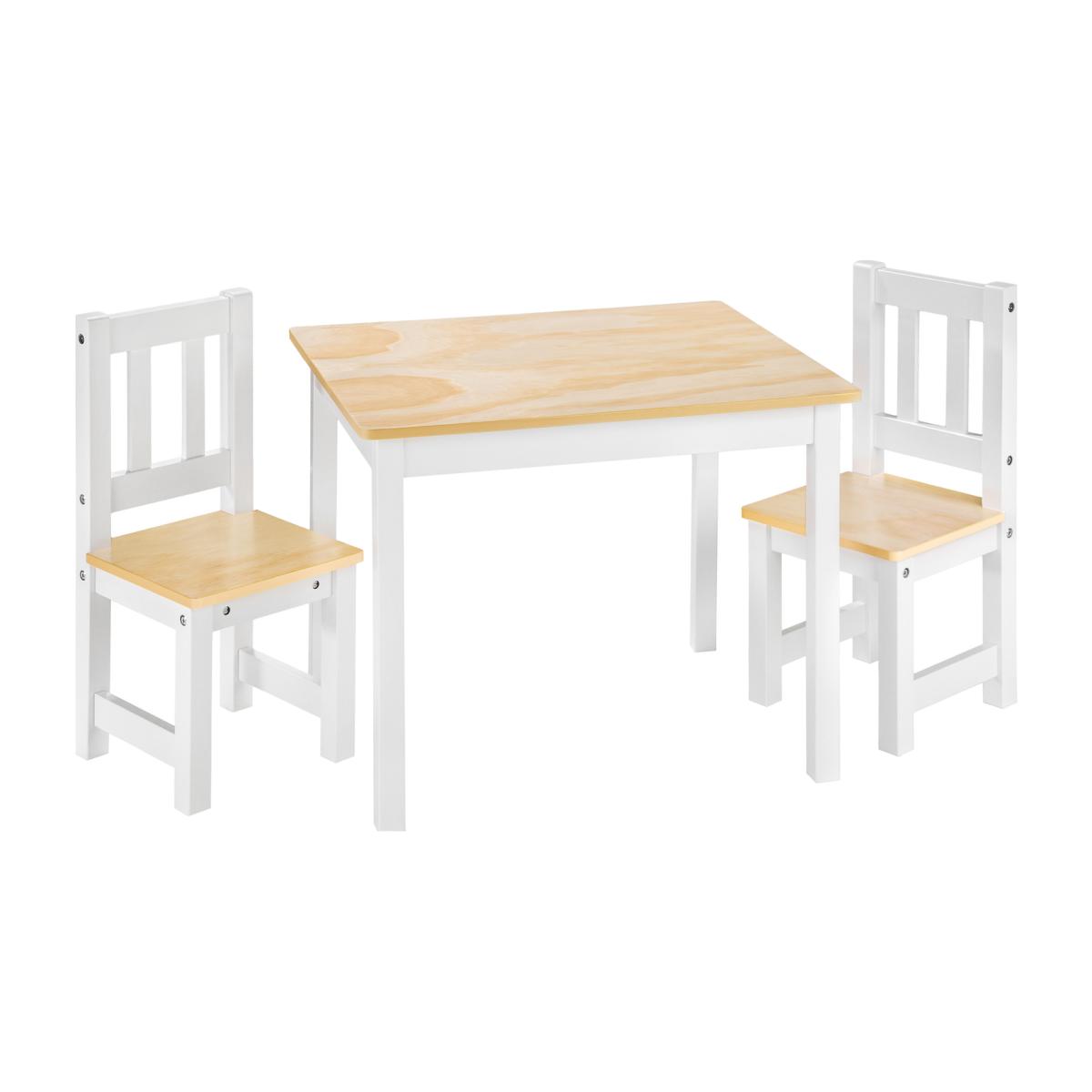 This charming children's table and chair set from tectake is perfect for playing, painting and crafts. The set includes a children's table with two matching chairs. Your little ones will be able to create new works of art for parents and grandparents on their new table. Its simple design means that this table and chair set will complement your existing furniture in your home. This 3-part childrens seating set will add a cosy vibe to any kids room. This furniture is designed at a child-friendly height, allowing a comfortable posture for young children. The set is sure to impress with its cheerful, timeless design. Order this wonderful table and chairs set from tectake for your kids today.