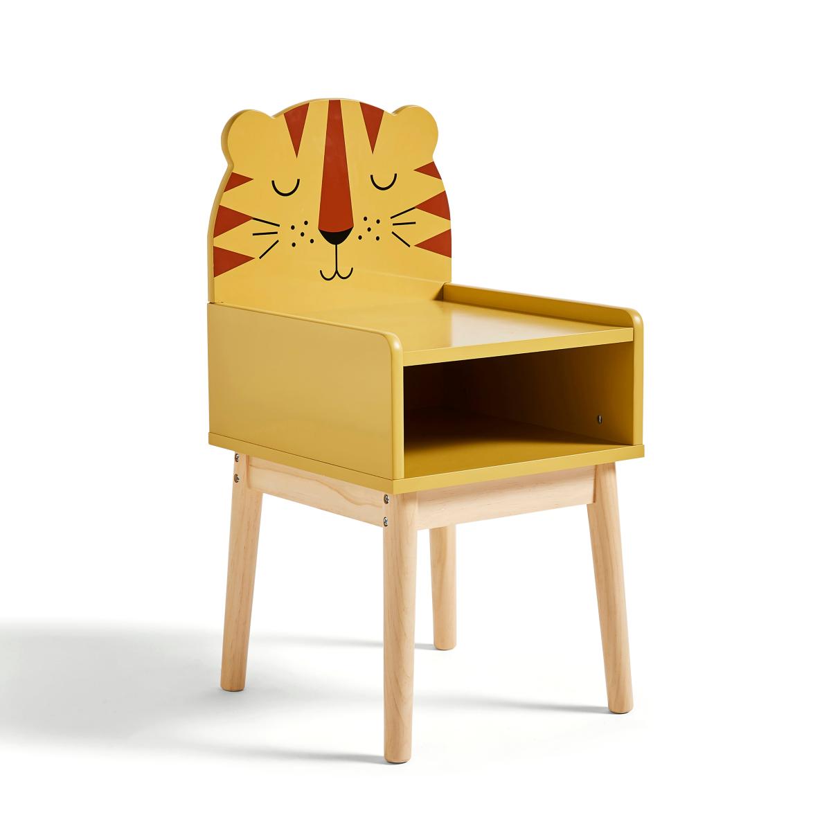 This paw-dorable table showcases a charming tiger design that is sure to capture your little one's imagination. With its playful and vibrant colours, it brings a touch of excitement and fun to the room. The table features a sturdy construction, providing a reliable surface for your child's bedtime essentials, such as books, toys, or a lamp. The handy shelf compartment allows you to store the messier items out of sight. Its compact size is perfect for small spaces, making it an ideal companion for cosy nights and early morning adventures.