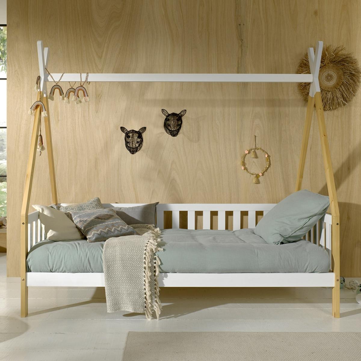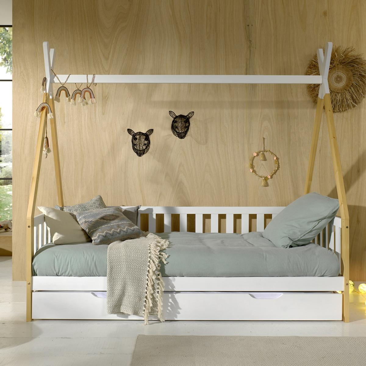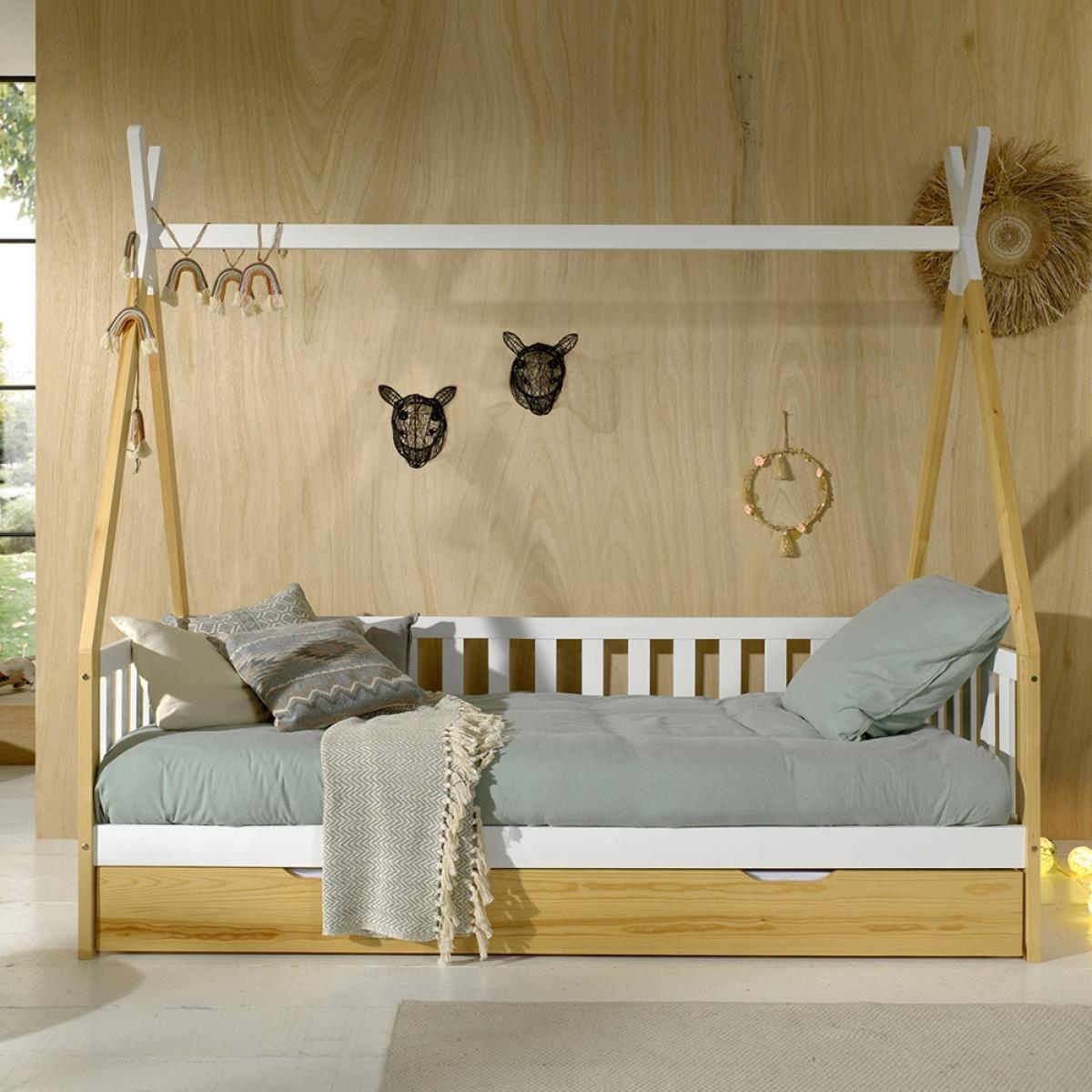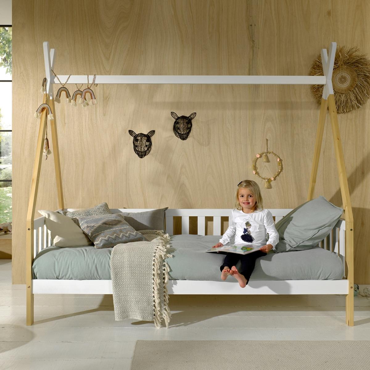 I love the kids' tipi bed for its playful yet functional design, which adds a whimsical touch to any child's room without compromising on practicality. It works well in modern, Scandi-inspired interiors due to its clean lines and natural wood details, but can also bring charm to more eclectic or rustic spaces. To style it effectively, consider pairing with soft, neutral bedding and colourful cushions or throws to create a cosy, inviting atmosphere. You could also add decorative tinsel or fairy lights within the tipi for a magical feel. Practical tips include keeping the space underneath free for storage or a play area, and using simple, coordinated accessories to keep the look tidy and versatile as your child's tastes evolve.