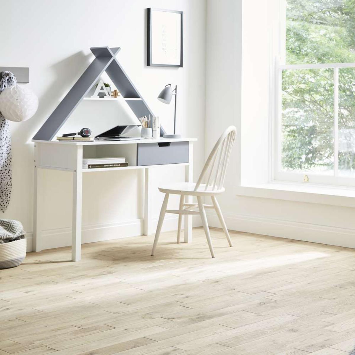 I love this kids tipi desk with storage for its playful yet practical design, perfect for creating a dedicated study corner in a child's room. Its grey colour ensures it complements a range of interiors, from Scandi-inspired minimalism to cosy, eclectic schemes. The tipi shape adds a fun element without overwhelming the space, while the built-in storage offers a tidy solution for stationery and books. For styling, consider pairing it with colourful accessories or a playful desk chair to keep the space vibrant and engaging. Placing it against a neutral wall allows the shape to stand out, and layering with themed accessories or soft lighting can make it a delightful workspace for children.