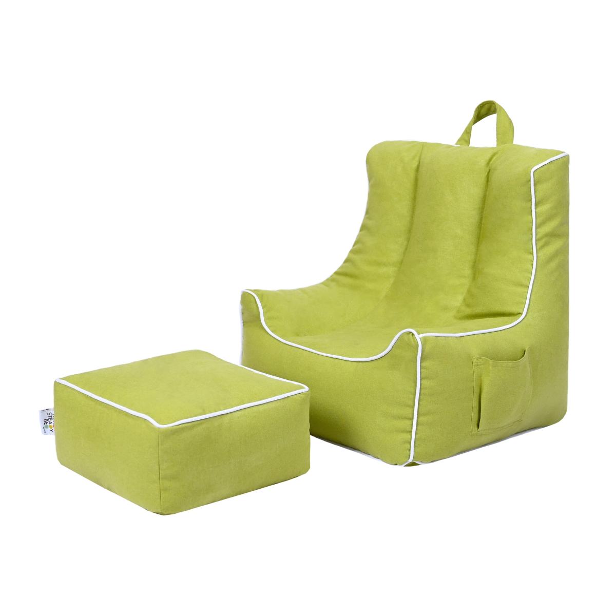 Kids Chair with Footstool: This children's armchair is perfect for your child's room or the living room. It's designed to be comfortable and supportive, with a focus on providing excellent back support. It's also incredibly lightweight, making it easy for kids to move it around the house. Child Safety: To ensure safety, we obtain our Fire-Retardant polystyrene EPS beads from trusted sources in the UK. When filling our children's armchair bean bags, we make sure to pack them to their maximum capacity while still prioritizing comfort and design. This means your child can enjoy a well-filled and cozy bean bag without any compromise on comfort or style. Carry Handle: Our bean bag comes with a convenient carry handle. This handle makes it easy for you to transport and move the bean bag around your home. Whether you want to bring it to the living room for movie night or take it to your child's room for reading time, the carry handle allows for effortless mobility. Now you can enjoy the comfort of the bean bag wherever you go!